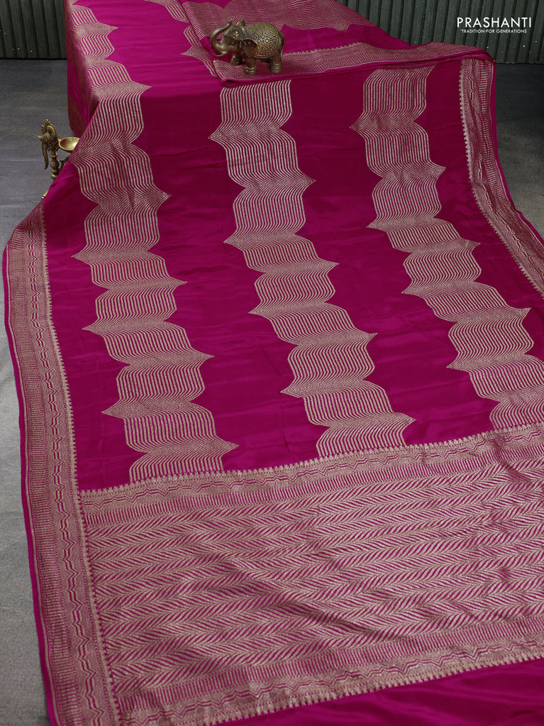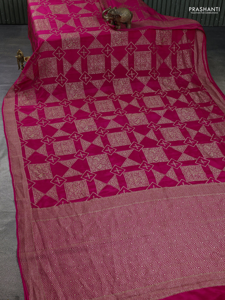 Banarasi crepe saree pink with allover geometric weaves and woven border