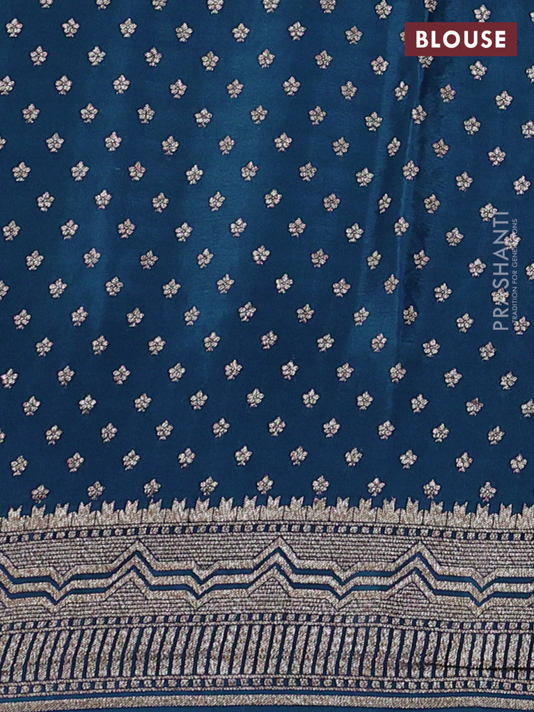Banarasi crepe saree peacock blue with allover geometric weaves and woven border