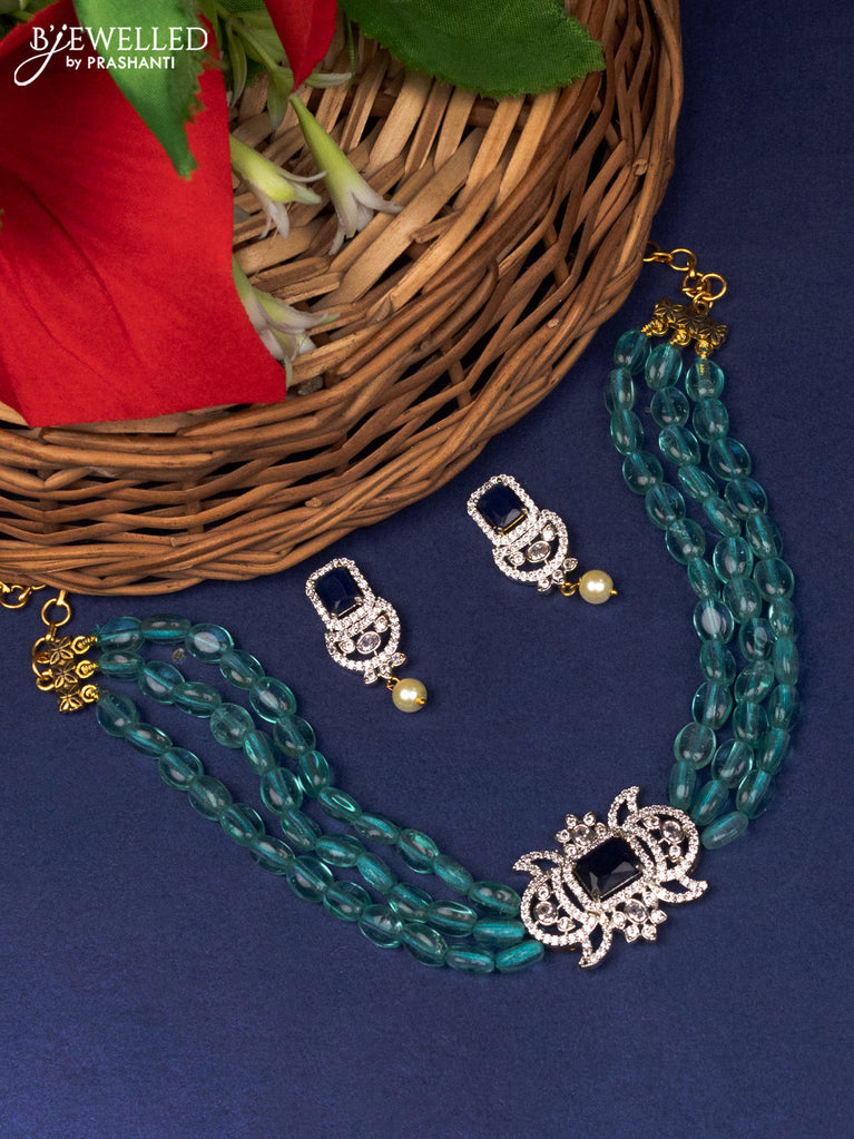 Beaded ice blue choker with kemp & cz stones and pearl hangings