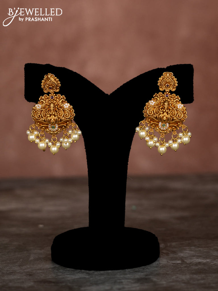 Beaded multilayer green necklace lakshmi pendant with kemp & cz stones and pearl hangings