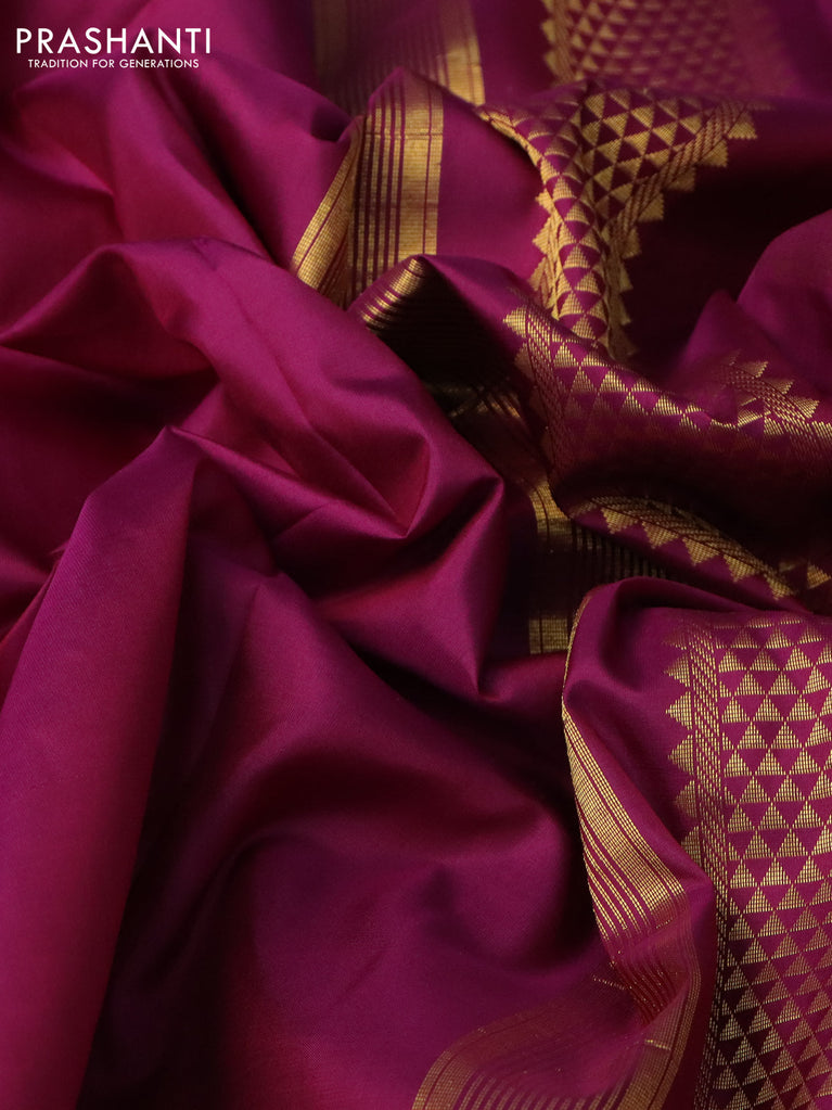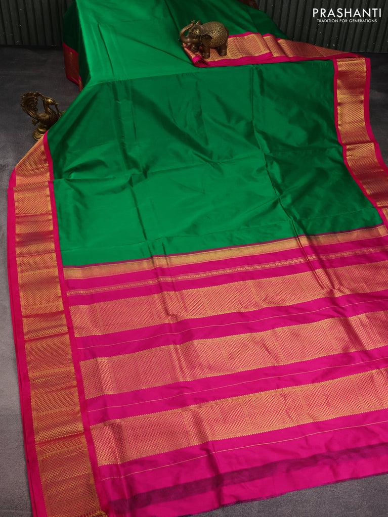 10 yards silk saree dark pink and green with plain body and zari woven korvai border