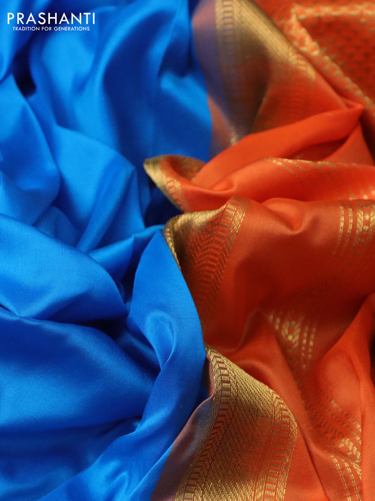 10 Yards silk saree cs blue and orange with plain body and zari woven border