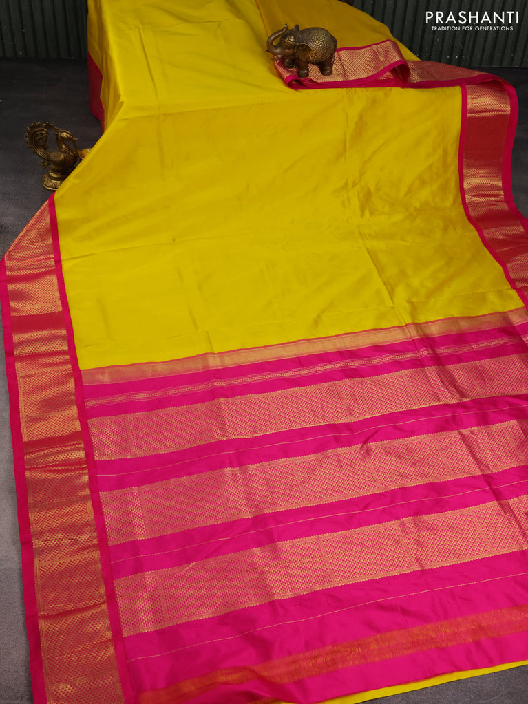 10 yards silk saree mango yellow and pink with plain body and zari woven korvai border