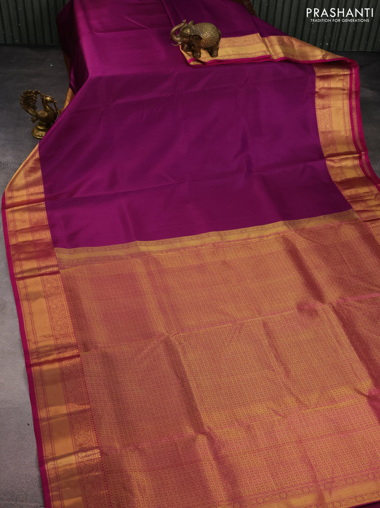 10 Yards silk saree purple and magenta pink with plain body and zari woven border