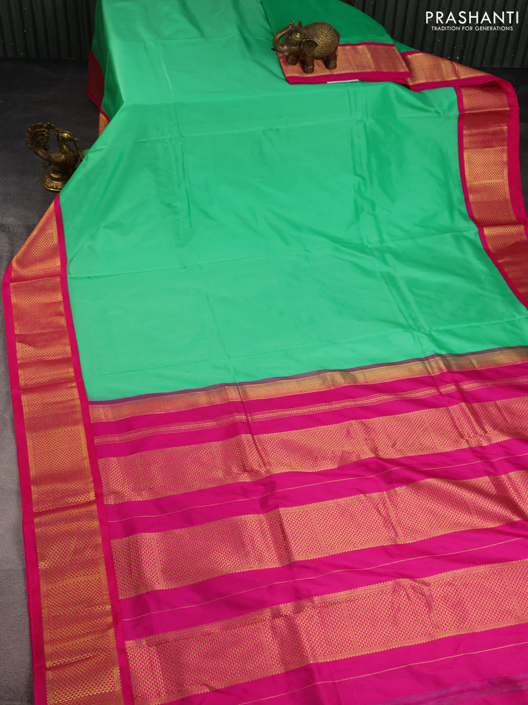 10 Yards silk saree teal green and pink with plain body and zari woven border