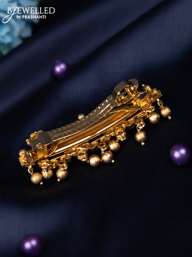 Antique hair clip medium size with kemp stone and golden beads hanging