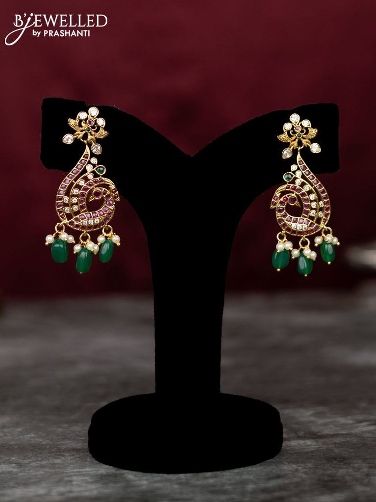 Antique guttapusalu necklace with kemp & cz stones and pearl & green beads hangings