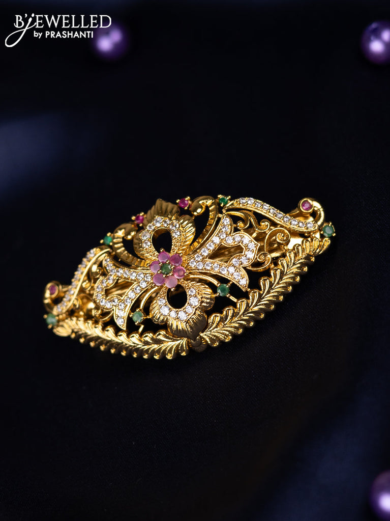 Antique hair clips medium size lakshmi design with kemp and cz stones