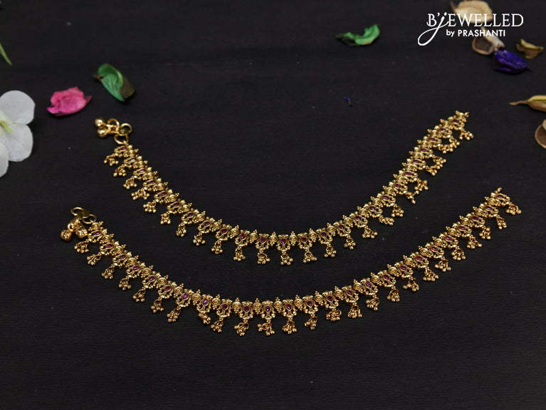 Antique attigai necklace manga pattern with kemp stones and golden beads hanging