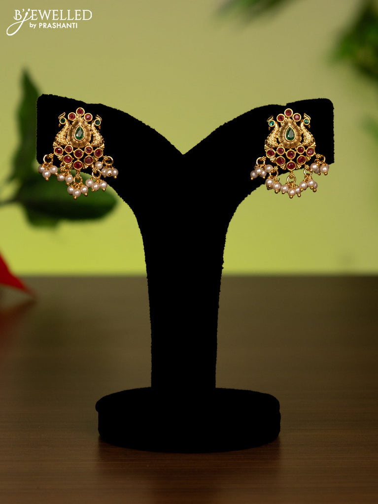 Antique attigai necklace peacock & chandbali design with kemp stones and pearl hangings