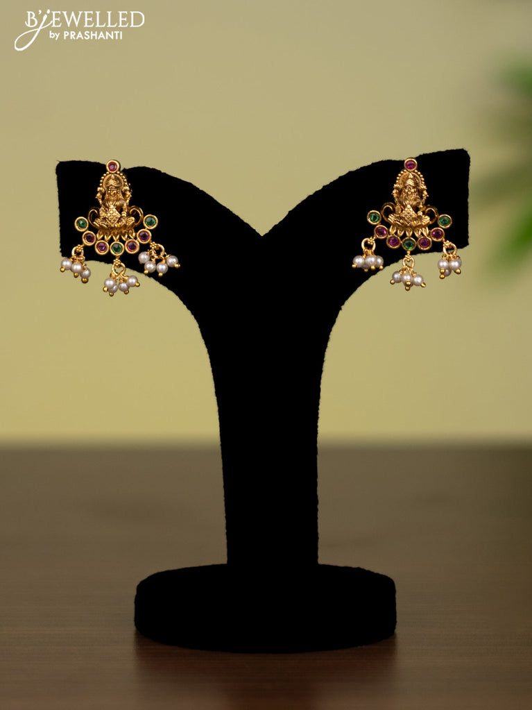 Antique attigai necklace lakshmi pendant with kemp & cz stones and pearl hangings