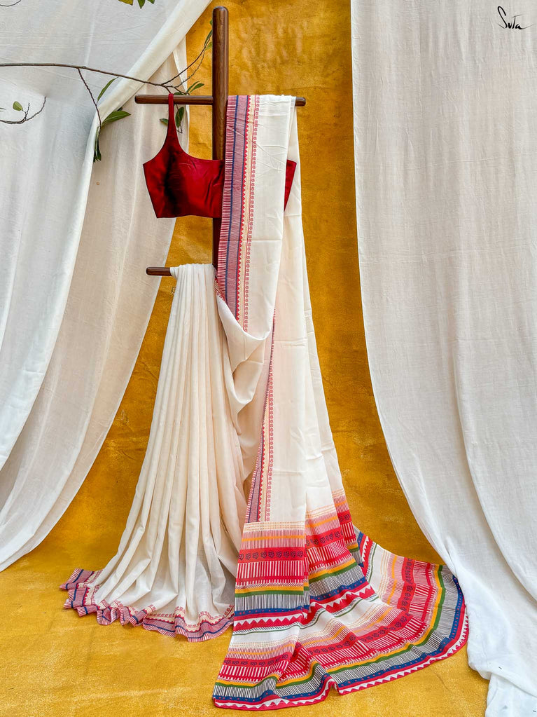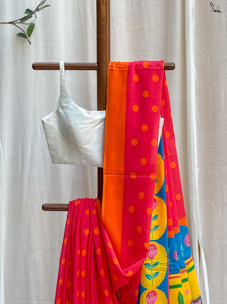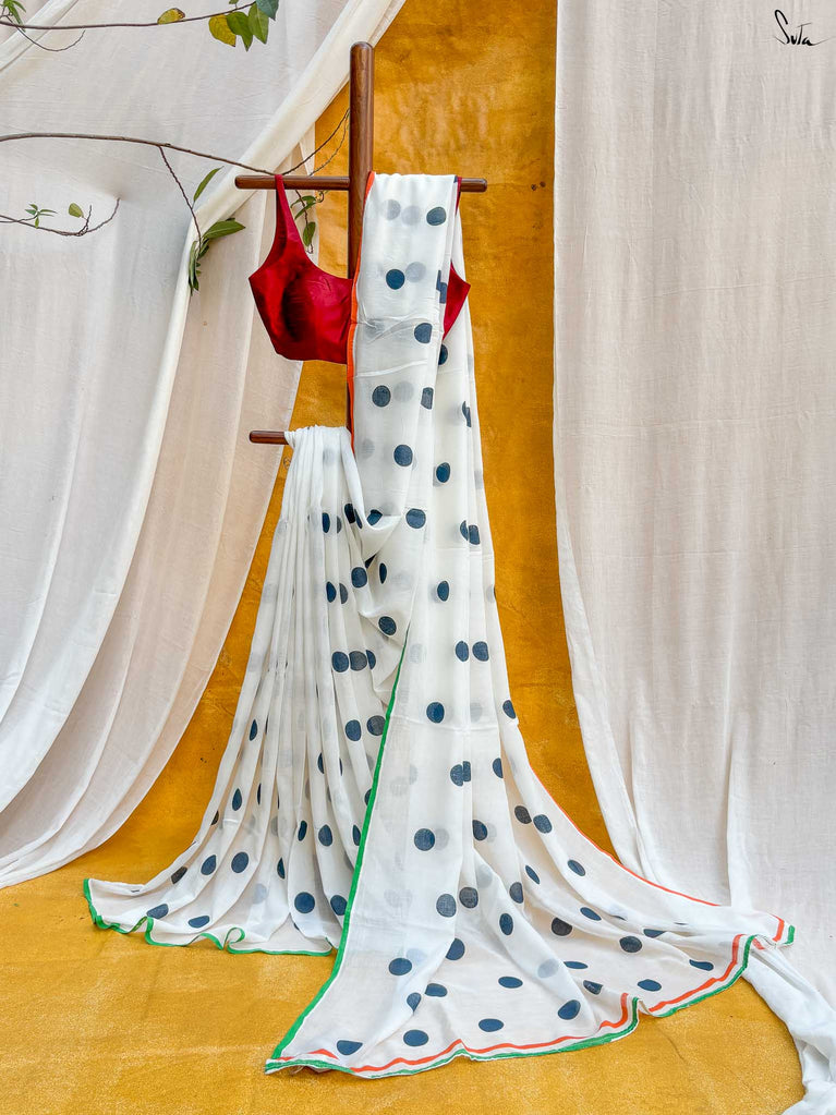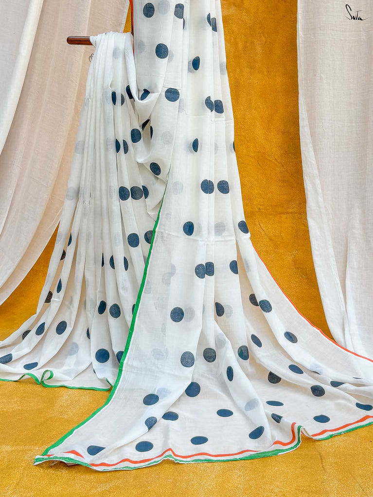 Note: Our mul sarees are slightly transparent, it’s the nature of the fabric and part of its soft, airy charm.