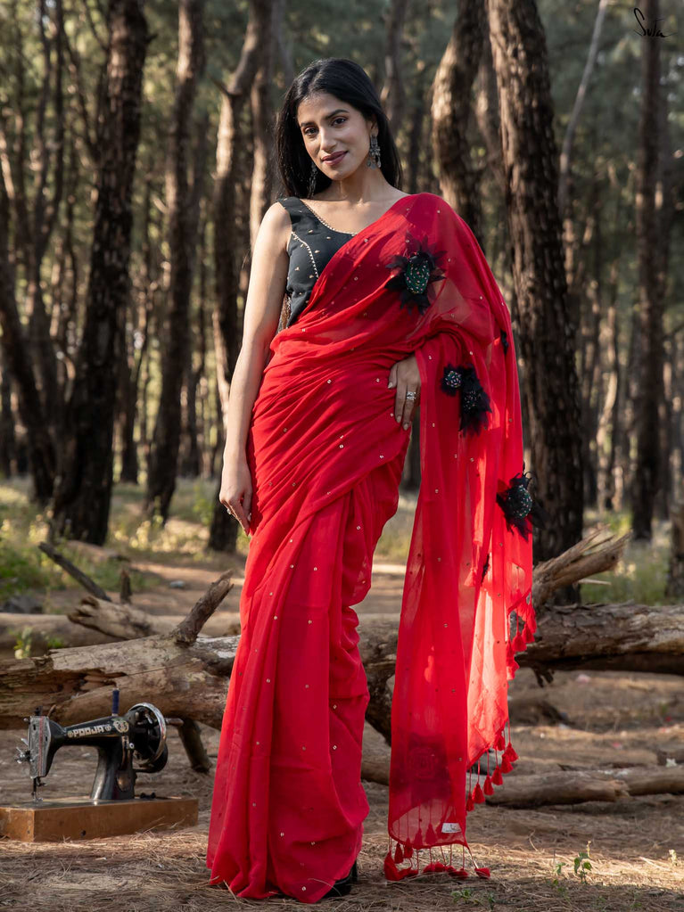 NOTE : Fall and ending is not required for a ruffle saree. You can drape this saree like a regular saree as it is not pre stitched.