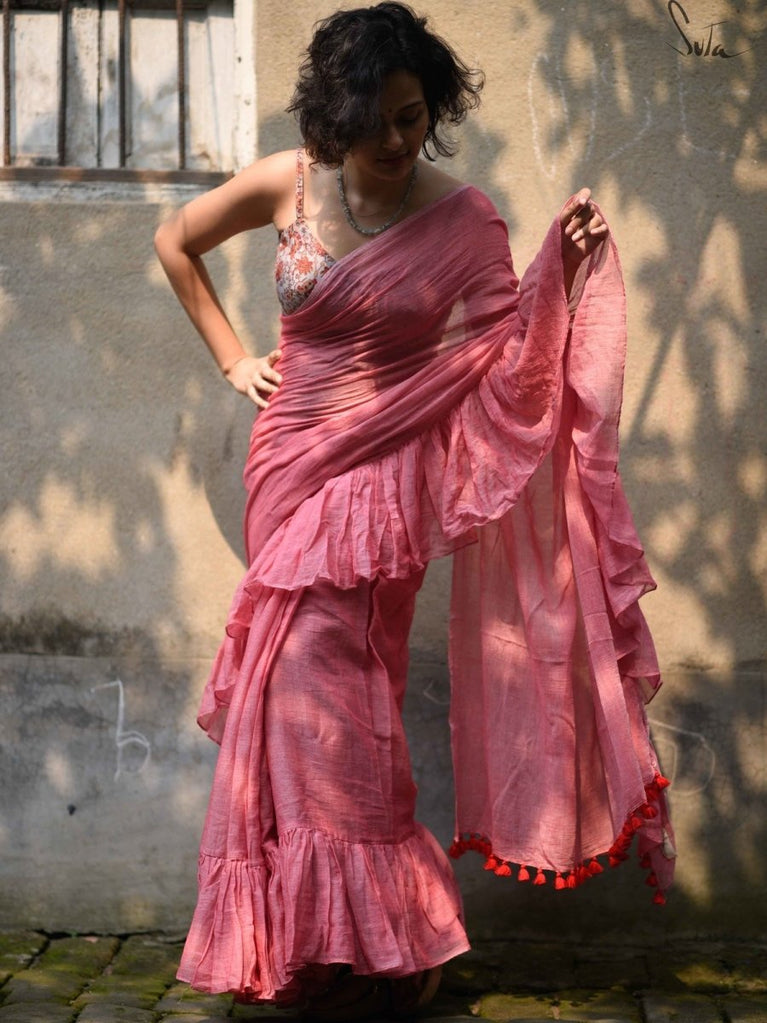 Ruffles are the perfect addition to the incredibly soft and light made-in-heaven Mul fabric. These pretty ruffle sarees are an amazing addition to your wardrobe because they offer the perfect mix of elegance and spunk.