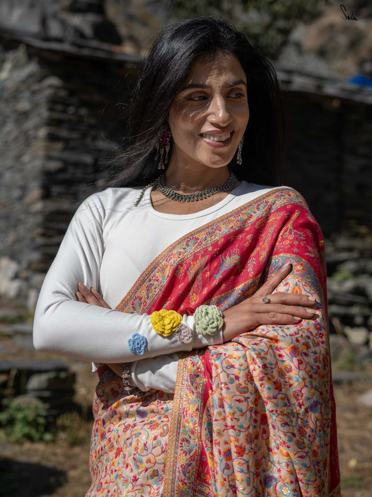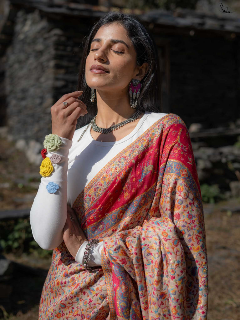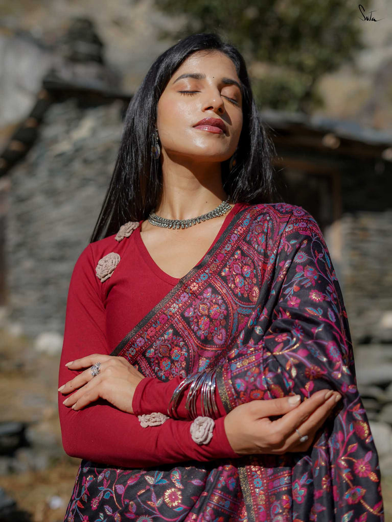 Note: The model is wearing a saree called Chinar Pashm