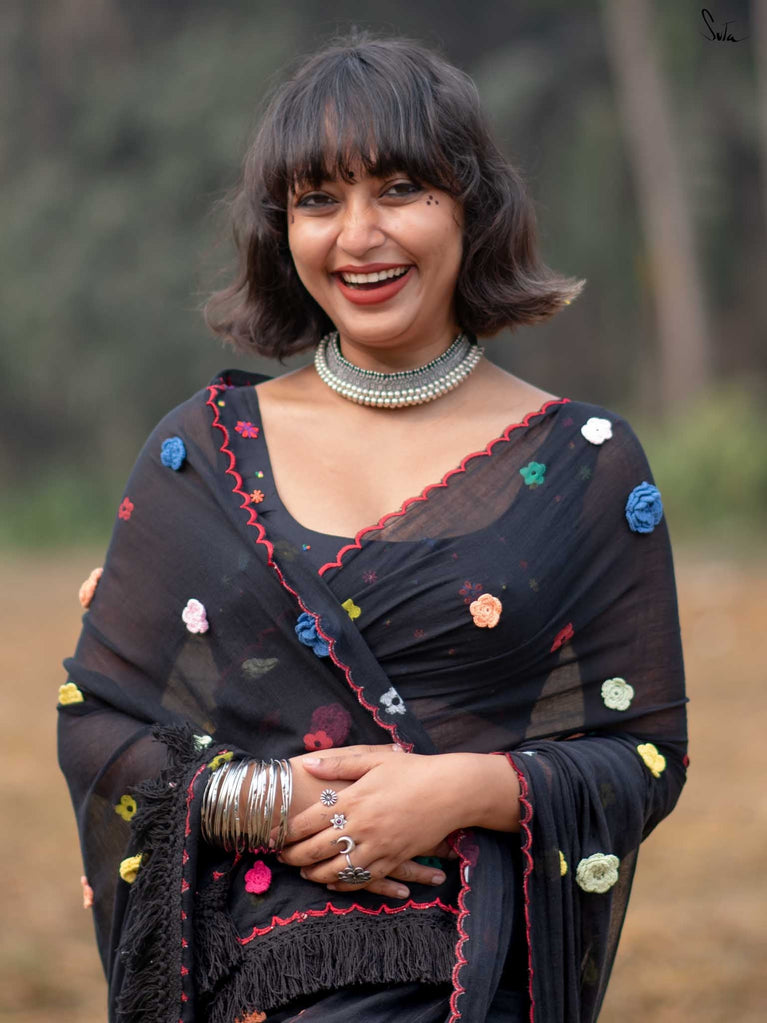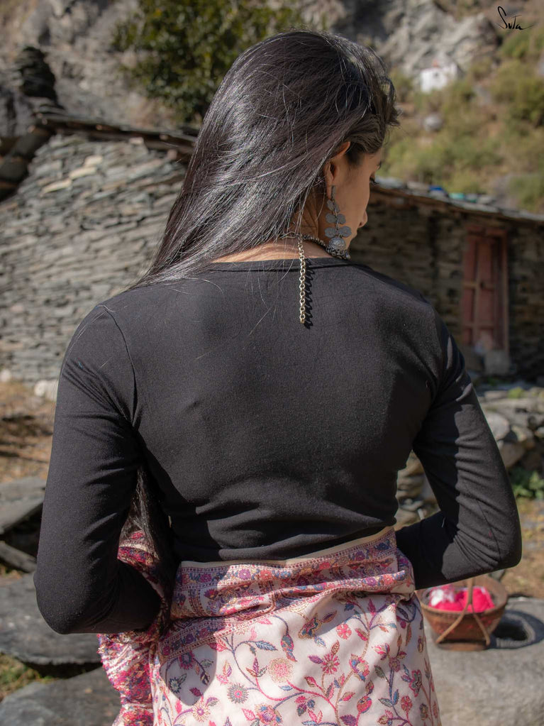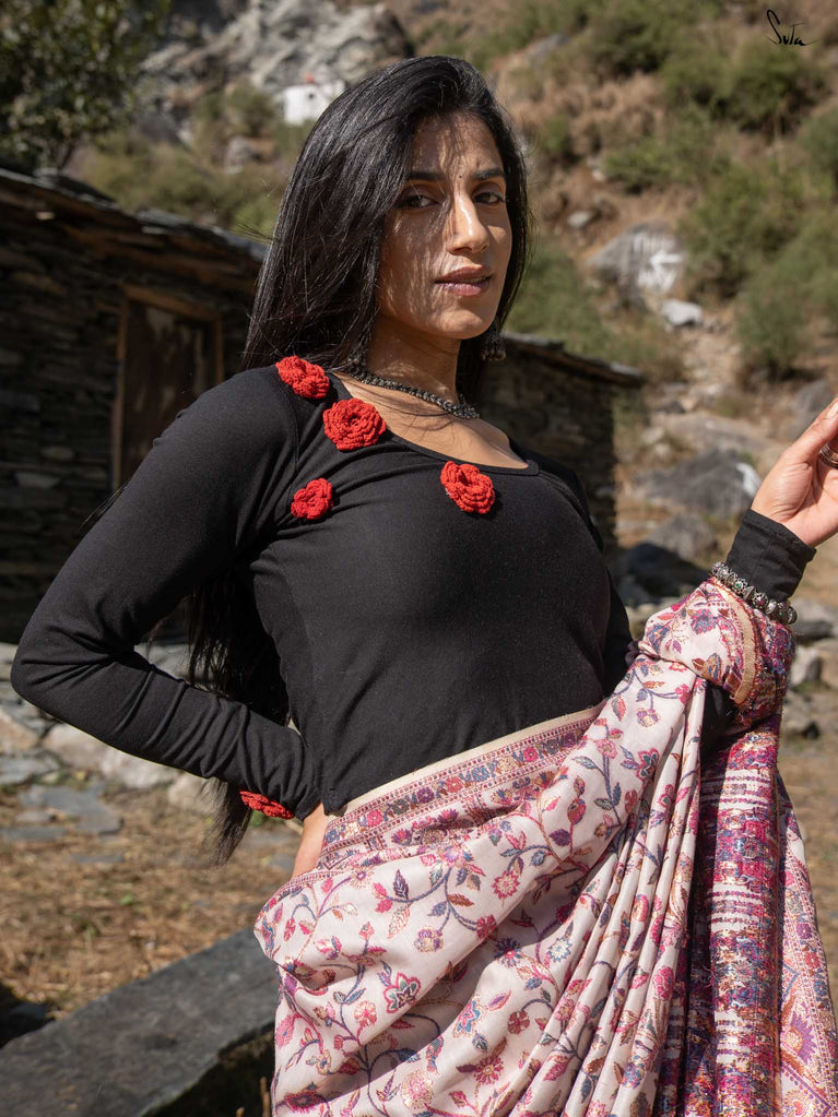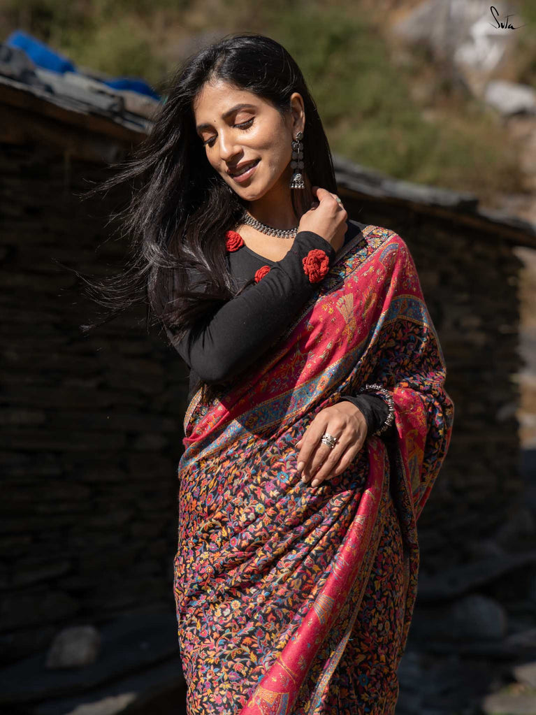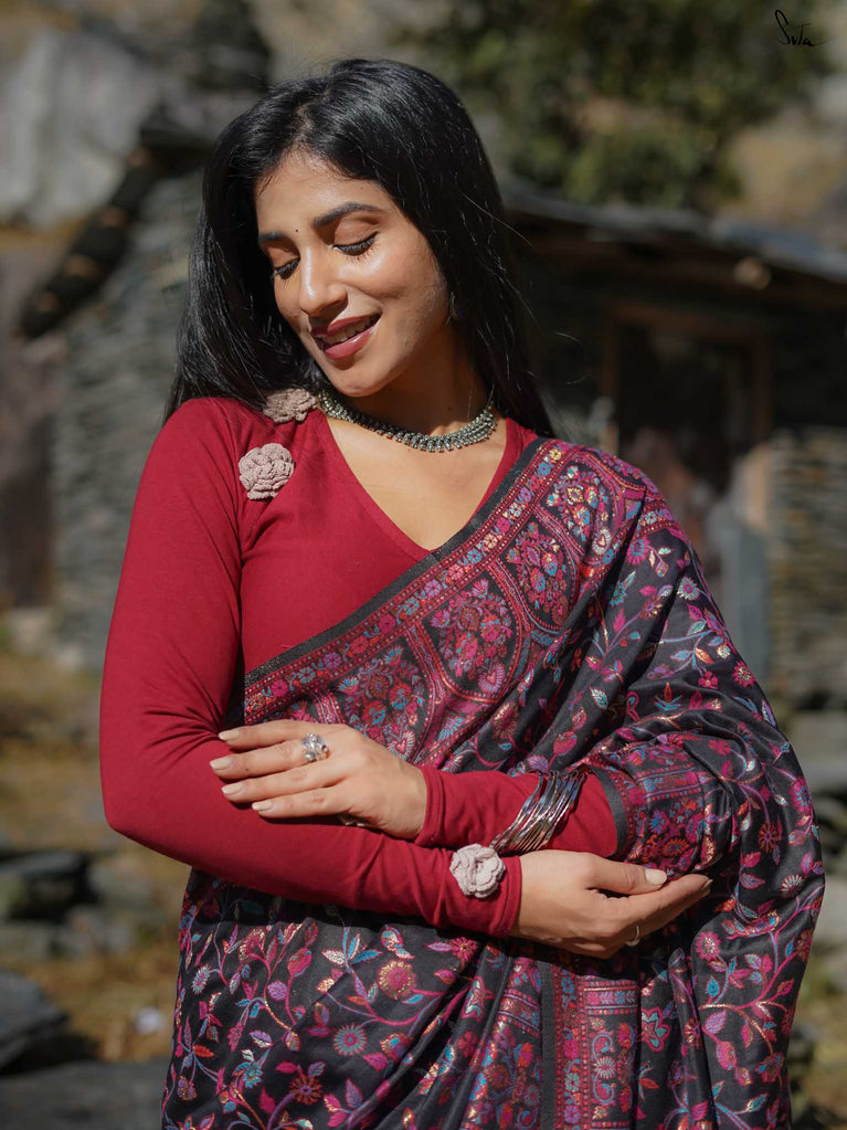 Note: The model is wearing a saree called Pine Pashm