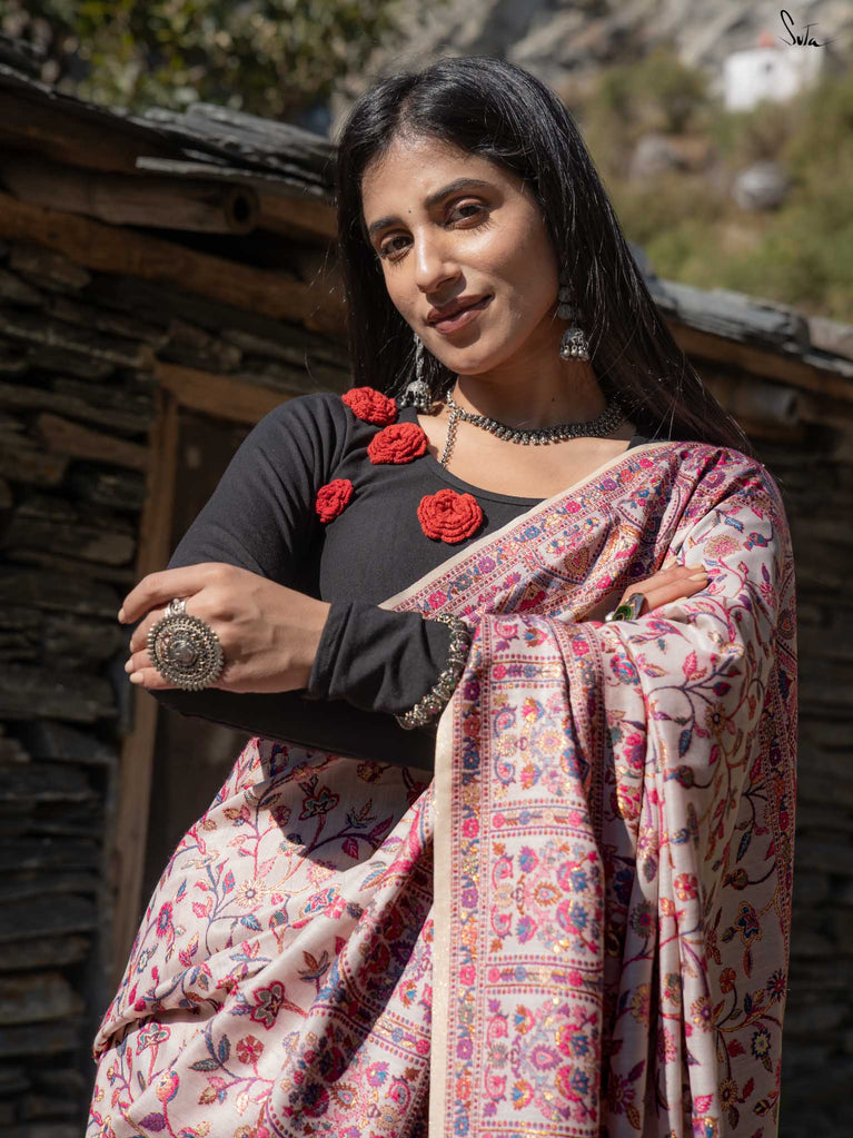 Note: The model is wearing a saree called Deodar Pashm