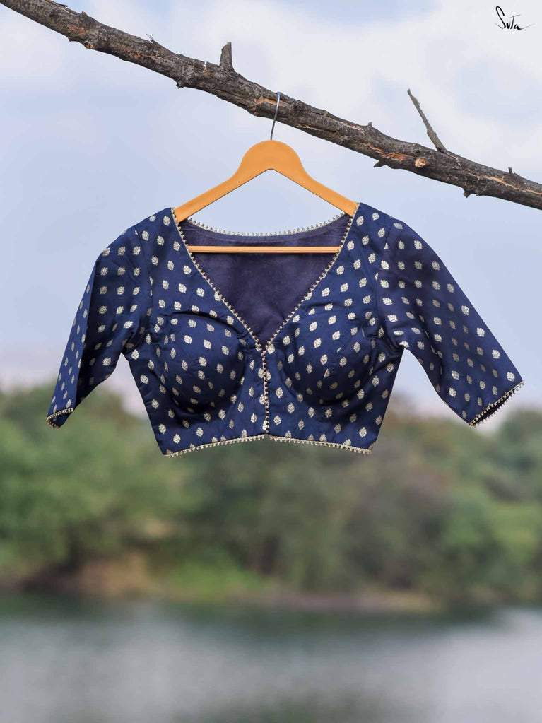Chic, elegant, and effortlessly festive, the Carbon Gold is a striking addition to your saree wardrobe. Crafted with intricate machine embroidery in playful polka motifs, this sleeveless blouse features a sophisticated dome neckline and a back-open hook closure for a comfortable, flattering fit. Perfect for pairing with festive, wedding, or evening sarees, it brings a touch of glamour and modern charm to any celebration.