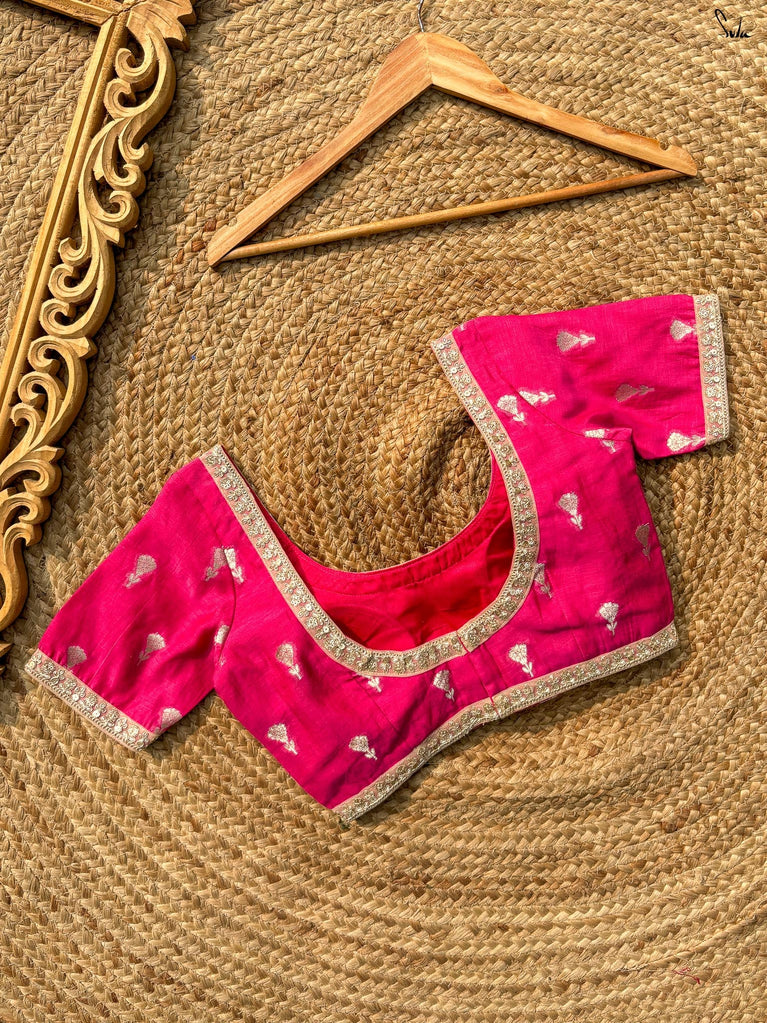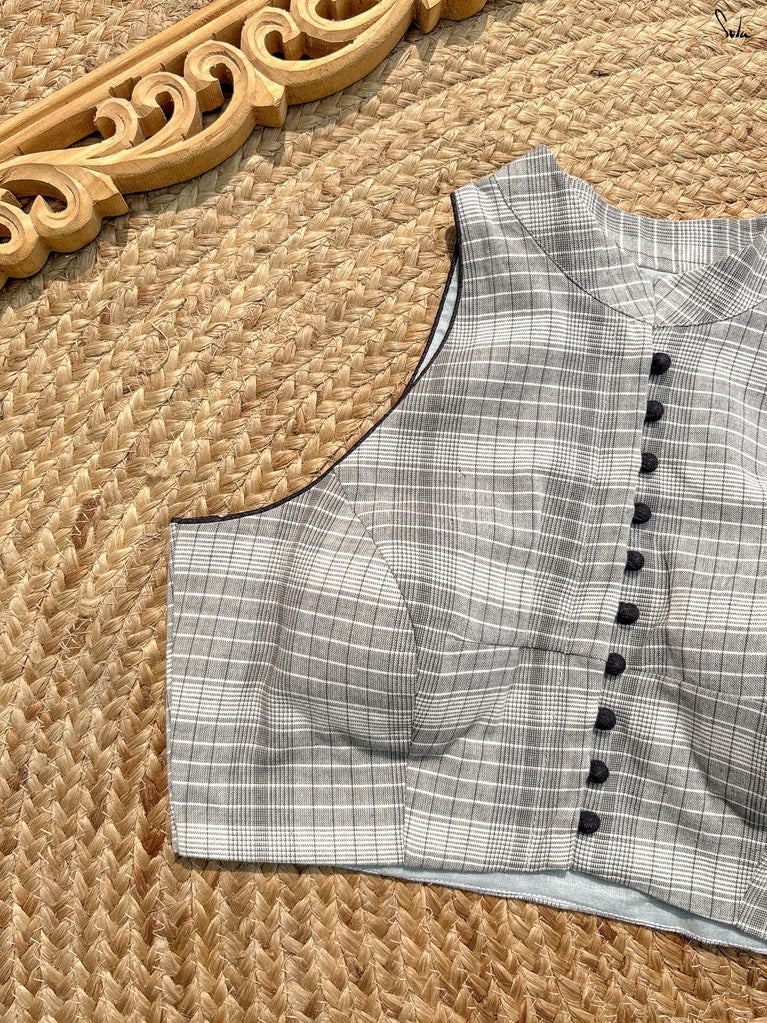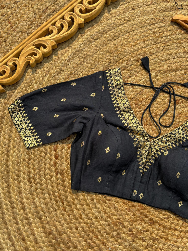 Every star needs the right canvas to shine, just like Amini needs you. This sleeveless gold blouse from Suta’s Taara collection is crafted from rich cotton silk chanderi blending excitement and modern style. The back hook-hole adds a contemporary edge, while the silver piping along the neck, armholes, and hem subtly complements your saree. Let your inner brilliance shine through with this Amini Blouse.