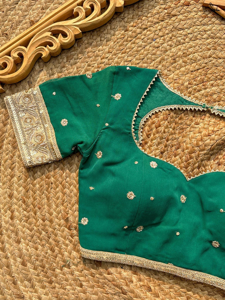 Light, refined and quietly radiant, this blouse adds a touch of effortless sophistication to any drape.
