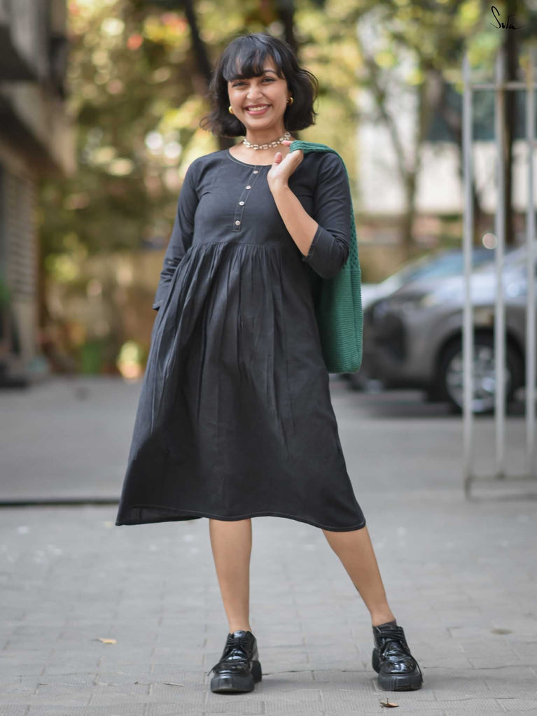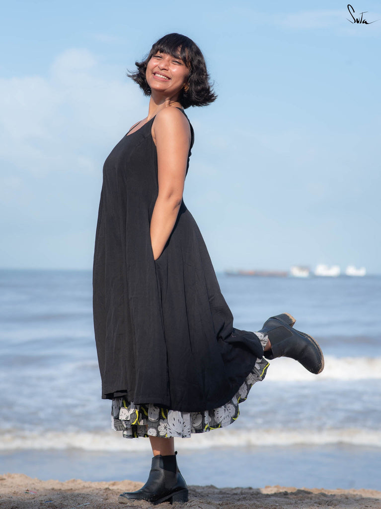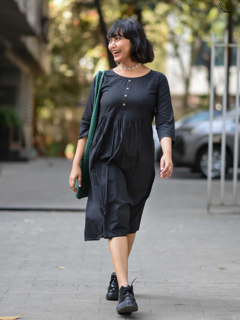 This gorgeous black dress is made out of the softest cotton fabric and is the perfect blend of bold & chic. It is all set to become your all time favourite dress ever!