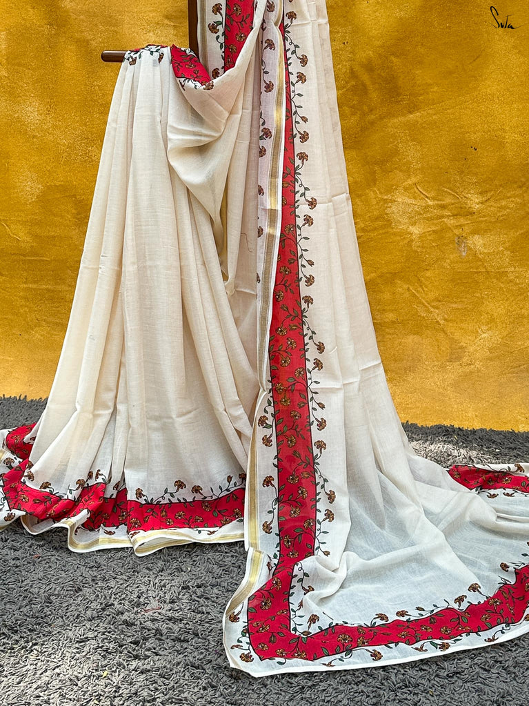 The mul cotton is what we call ˜made in heaven at Suta. Known in West Bengal as mul mul, the fabric is buttery soft and delicately beautiful. The weave of this fabric is very fine, and this lends a very fluid texture to it that makes draping it a breeze. It is truly like a hug that wraps you in its love!