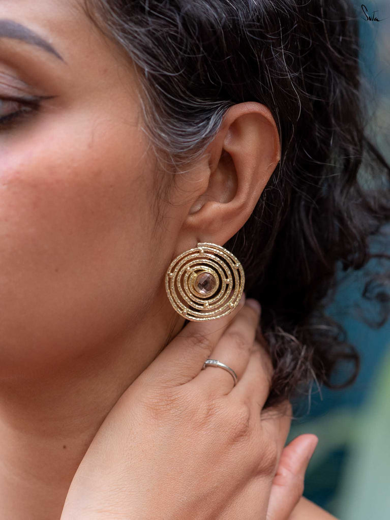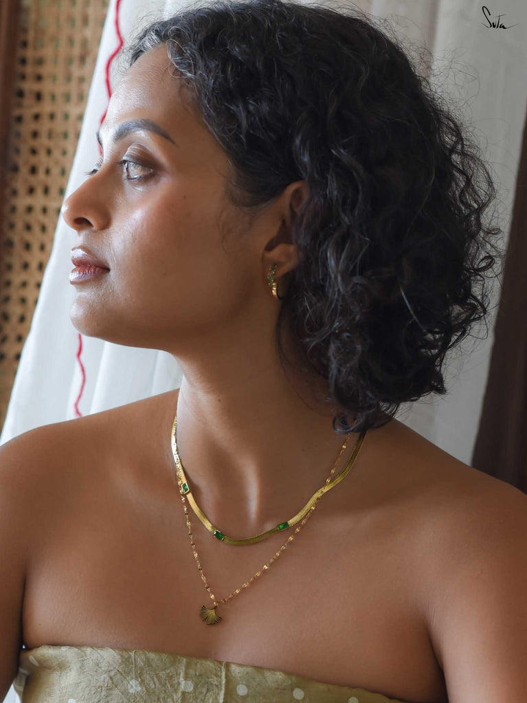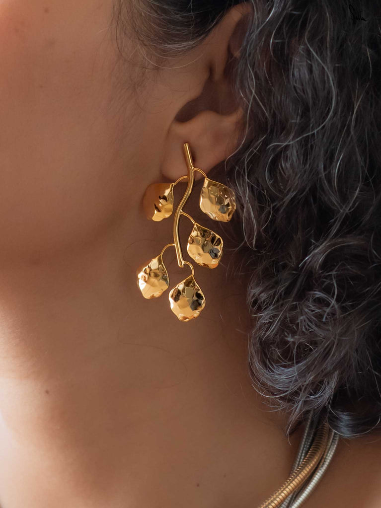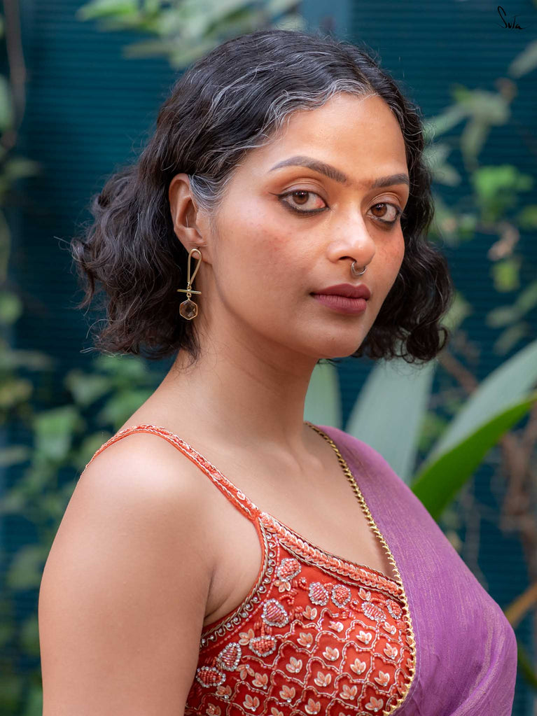 Like the mystical folds of the lotus, a symbol of enlightenment, resilience and rebirth, this collection of hammered brass jewellery is versatile, multi-faceted and mesmerising. Each unexplored frond of our stunning floral designs unravels a delightful new dimension of its wearer. Each little detail draws us back to the beauty of the little things. Painstakingly crafted by hand, resplendent in the most elegant matte gold, Padmini is the crowning glory of all of Suta’s creations. These pieces are perfectly suited to our gorgeous sarees, our statement blouses, our beautiful kurta sets, and our breath-taking lehengas. Put together, they create an aesthetic that is unmistakably Suta. A vibe that is unmistakably YOU.