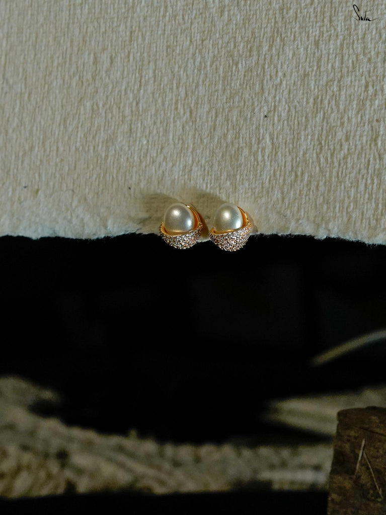 Sterling silver earrings with a micro-gold finish, pearl & AD, screw closure. Love that shows presence in its purest form. Charming, bold, and fully focused. For days when you’re confused about what to wear?