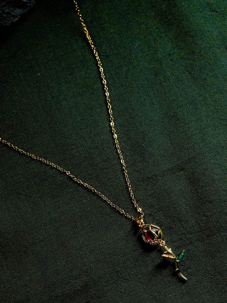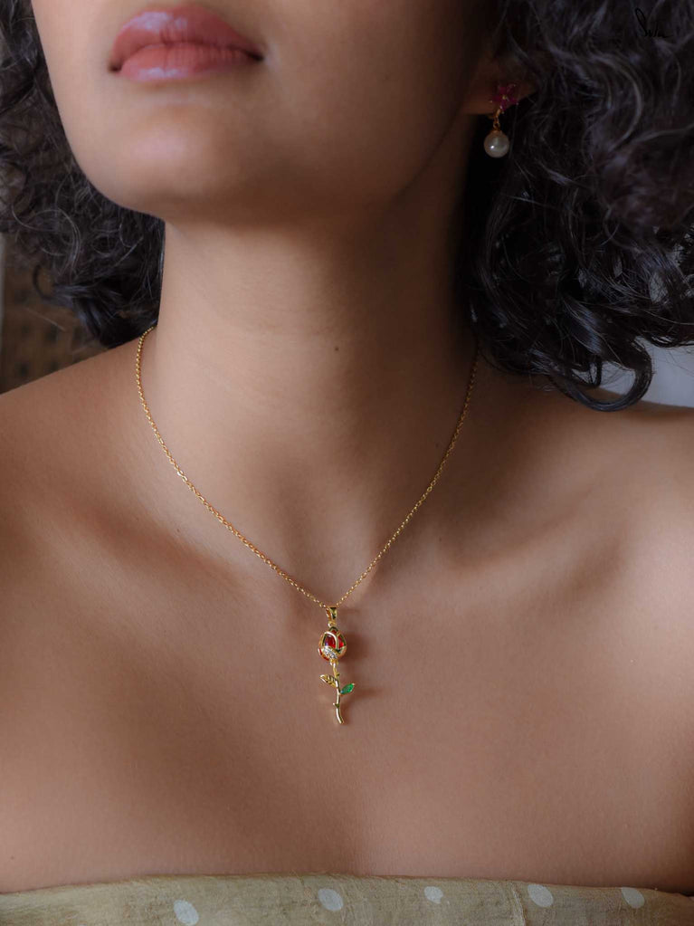 Clasp pendant in silver-brass alloy with crystal, AD & ruby. A flower that whispers romance, not loud, but lasting. For all day, every day!