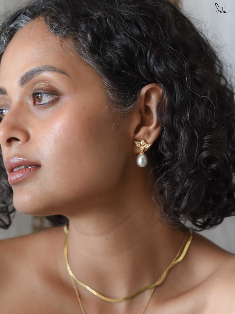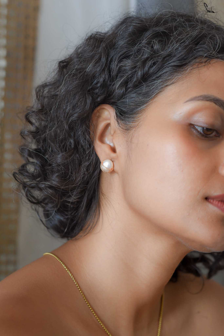 Micro-gold screw earrings in 92.5 silver with pearl and AD. Loops that giggle, move, and play. Glam without the drama. Made for you, all day, every day!