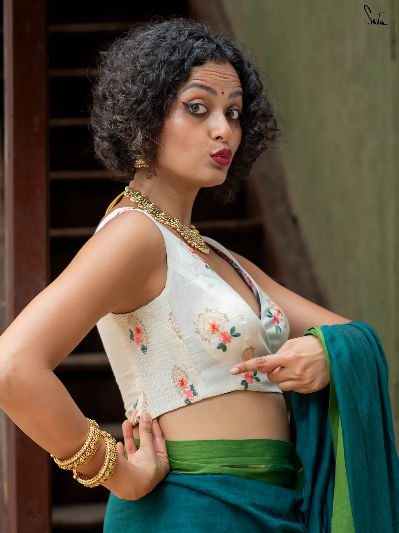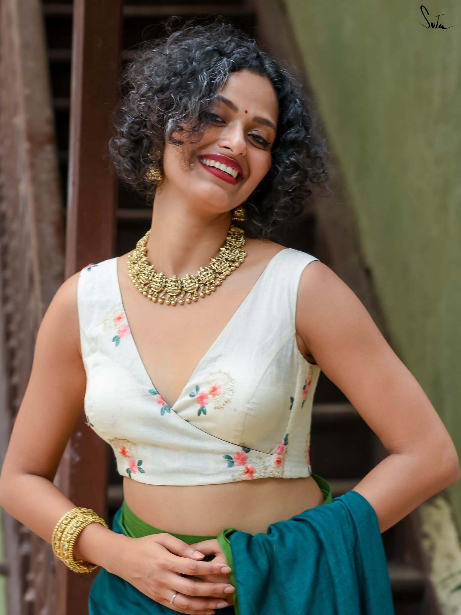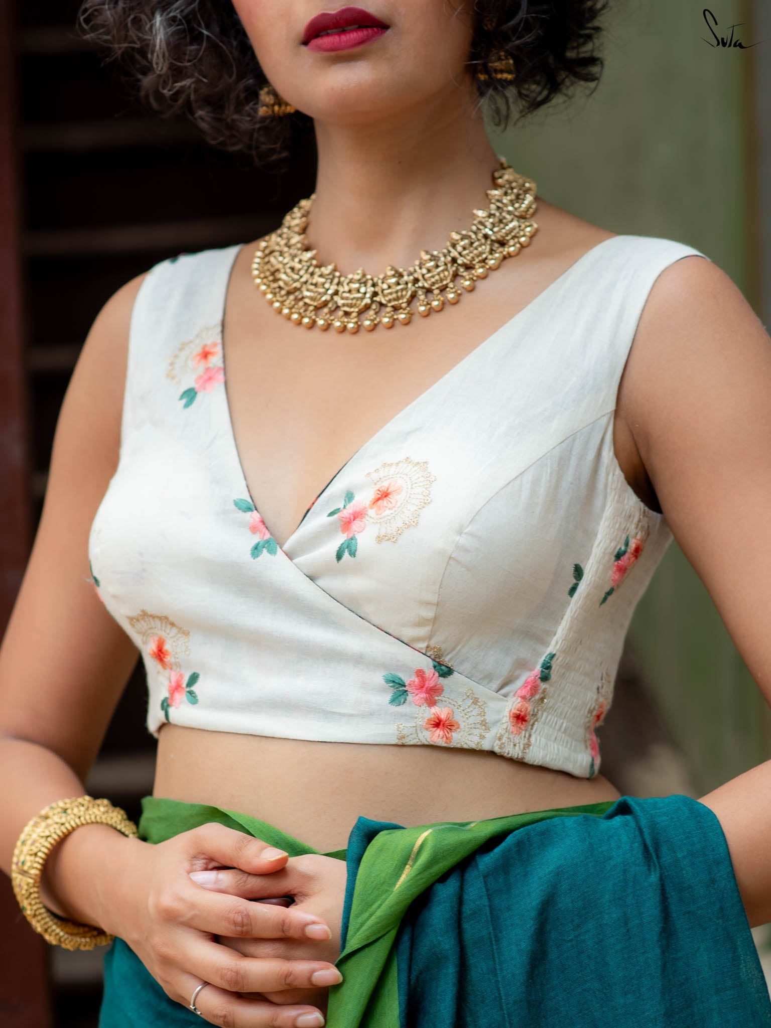 Comfort and style blend together in black and white. Alat Palat Malai is a sleeveless cotton blouse with a comfortable elastic fit. The V-neck front adds a modern edge. Great for layering or styling as a statement piece