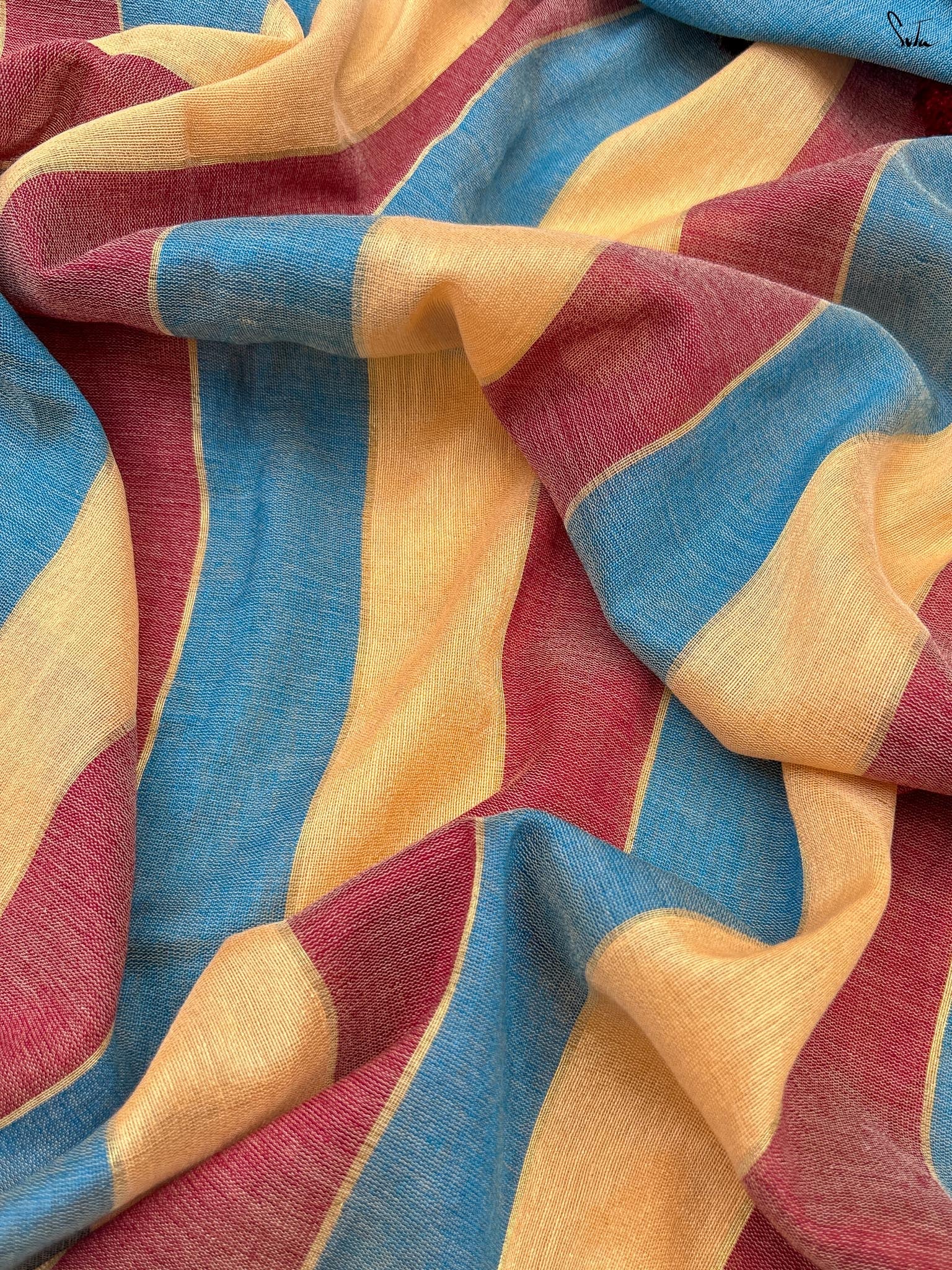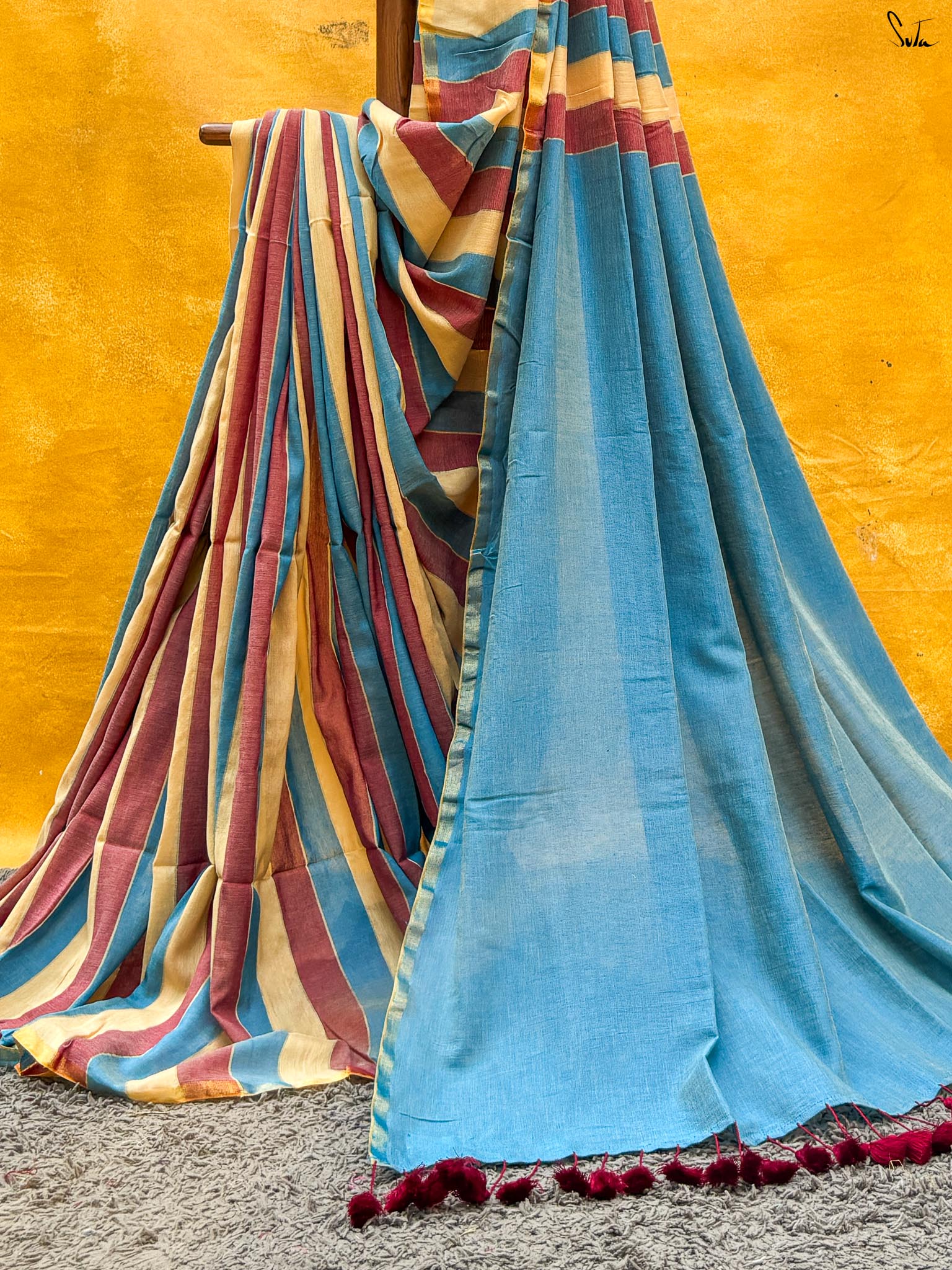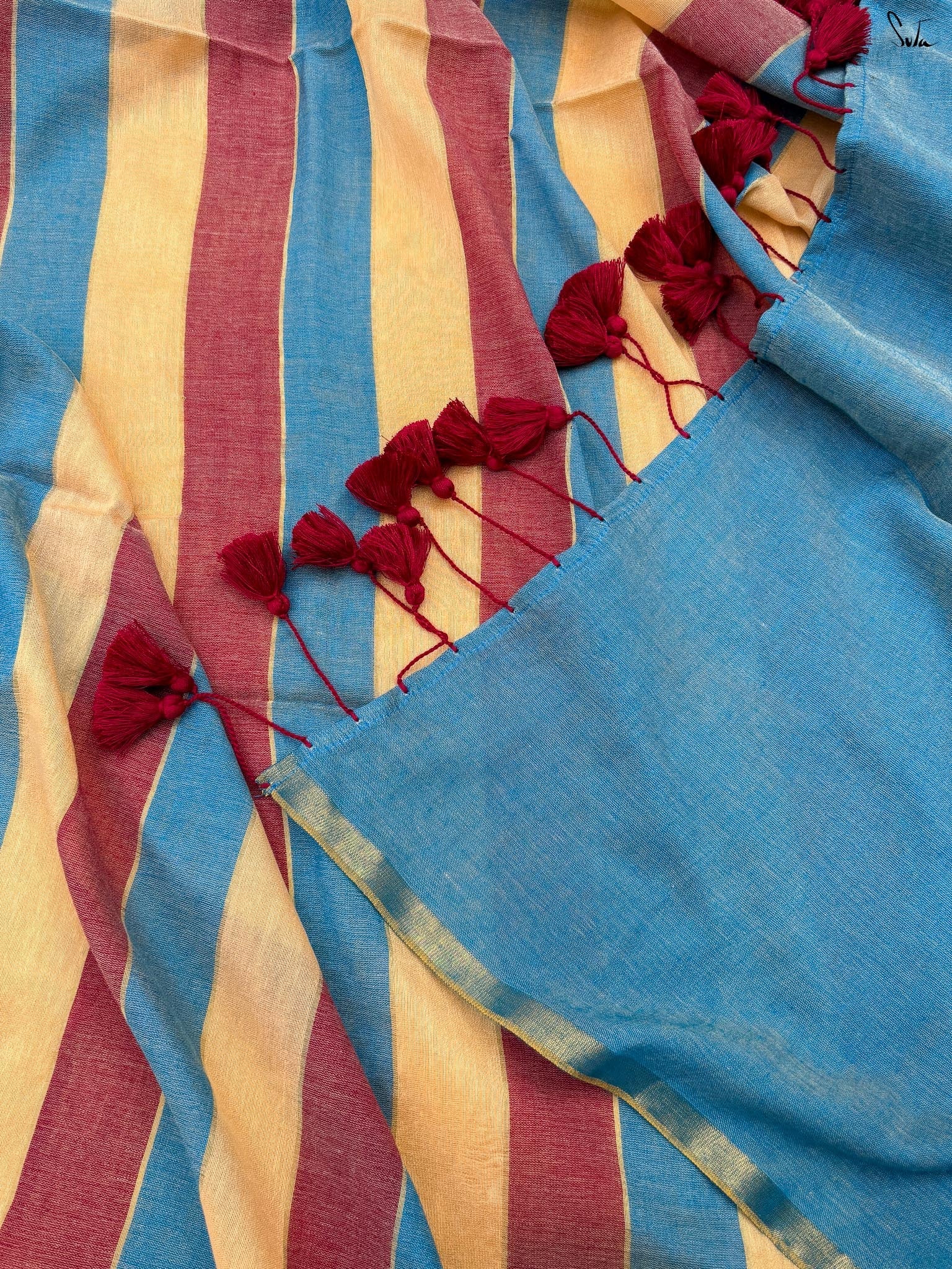 Cotton fabric dates back to some of the most ancient civilisations and it has a strong presence in the modern wardrobe as well. The softness and lightness of cotton combined with its strength and versatility makes it one of the most popular choices, especially for the Indian climate. We took this simple, elegant fabric and combined it with acrylic for that added sheen and voila! We love what we see and the saree falls so beautifully that it feels like second-skin!