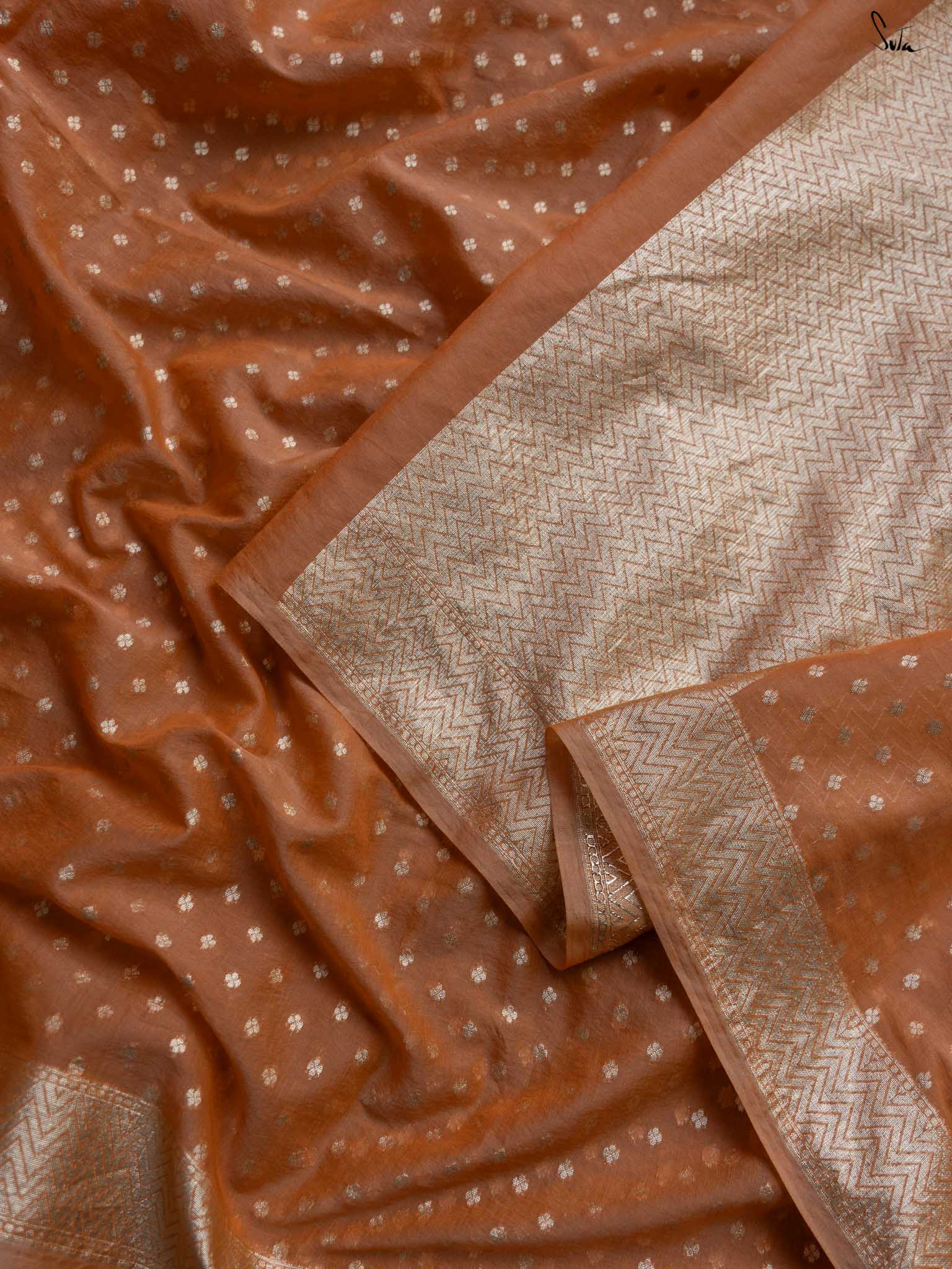 This saree has a running blouse piece woven into it.