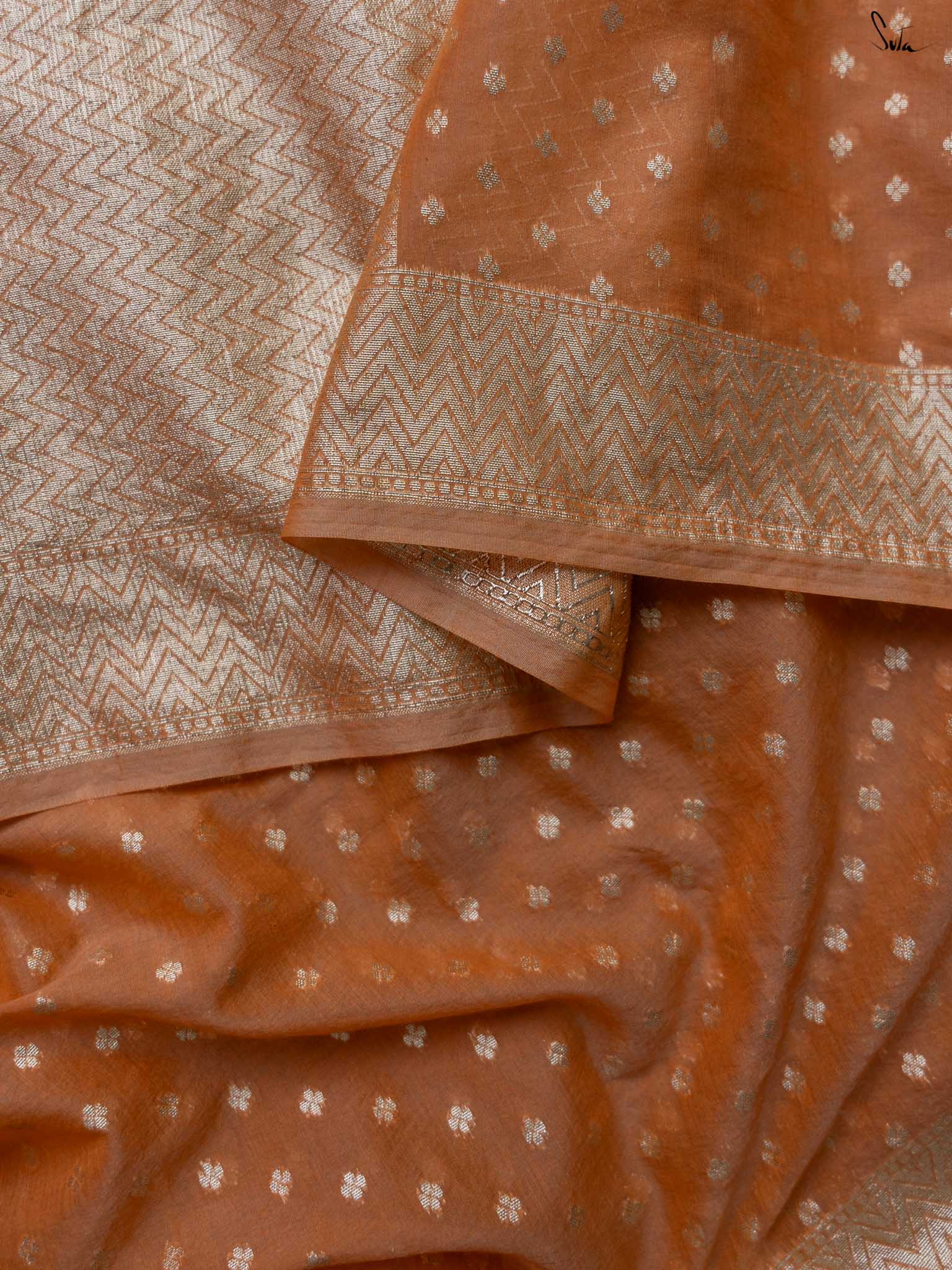 Paying ode to the soothing glow of the winter sun, the 'Dhoop Ka Taj' saree is well and truly a heartwarming piece of art. Woven from lustrous cotton polyester fabric, this jacquard saree features a shining peach base that resembles the shining wedding lights, every sparkle of which screams celebratory vibes!