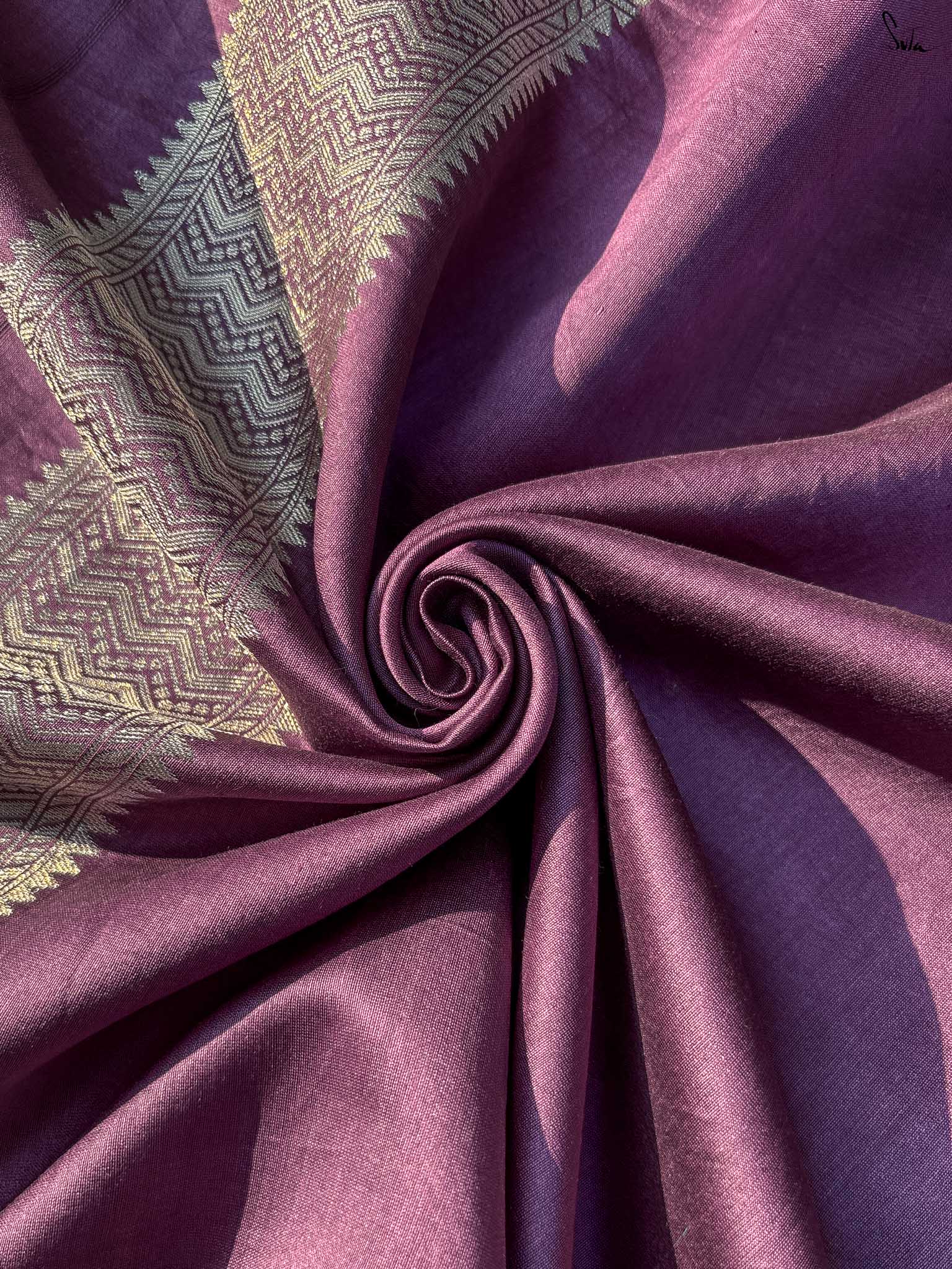 Like the melody it’s named after, Thumri flows with quiet grace and deep emotion. Draped in a rich wine hue, this cotton-silk saree carries an intricate floral jaal woven in soft, dull gold - a gentle nod to timeless opulence. Light as a whisper yet regal in presence, it’s perfect for moments that call for understated celebration.