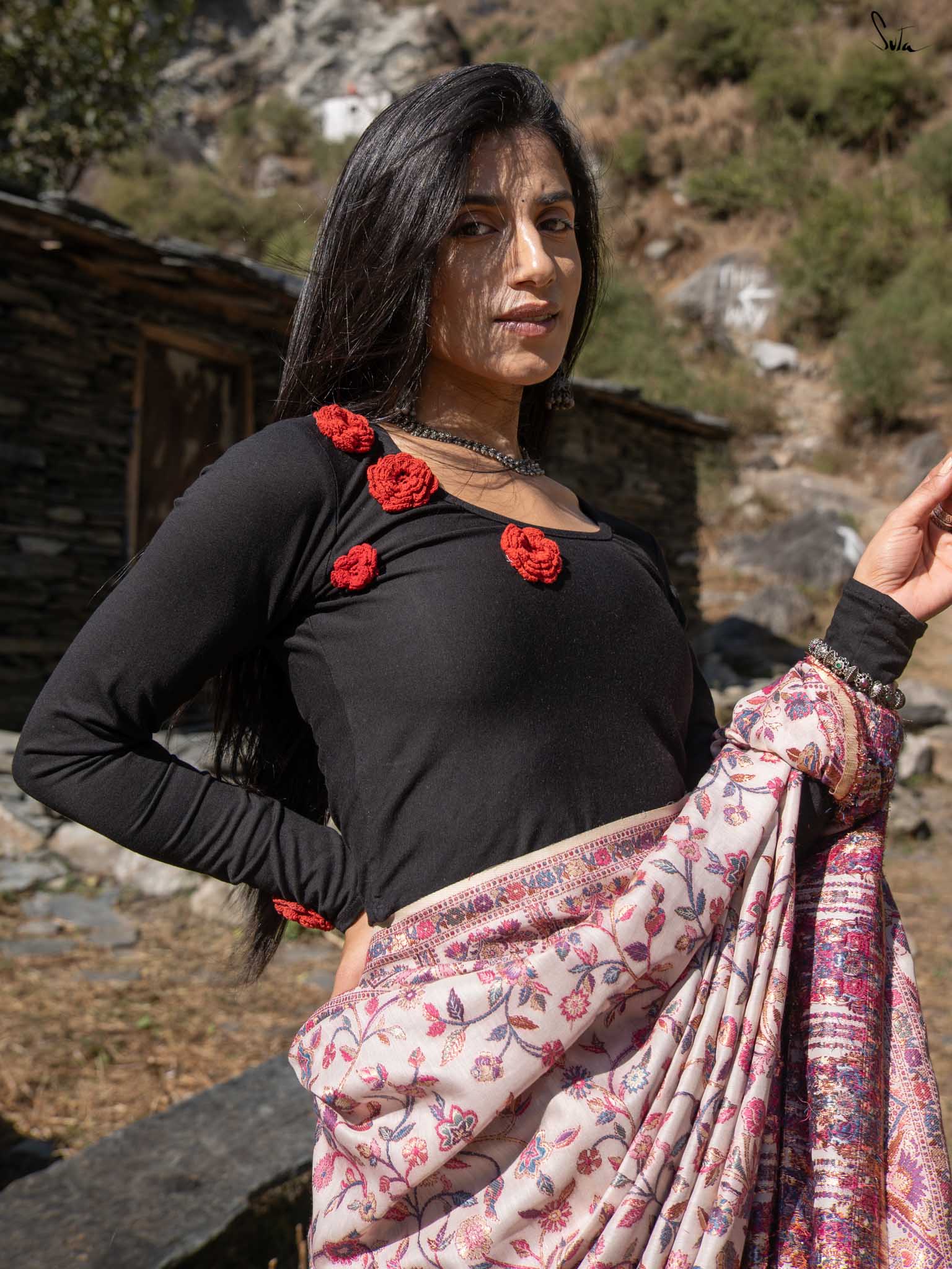 Note: The model is wearing a saree called Chinar Pashm