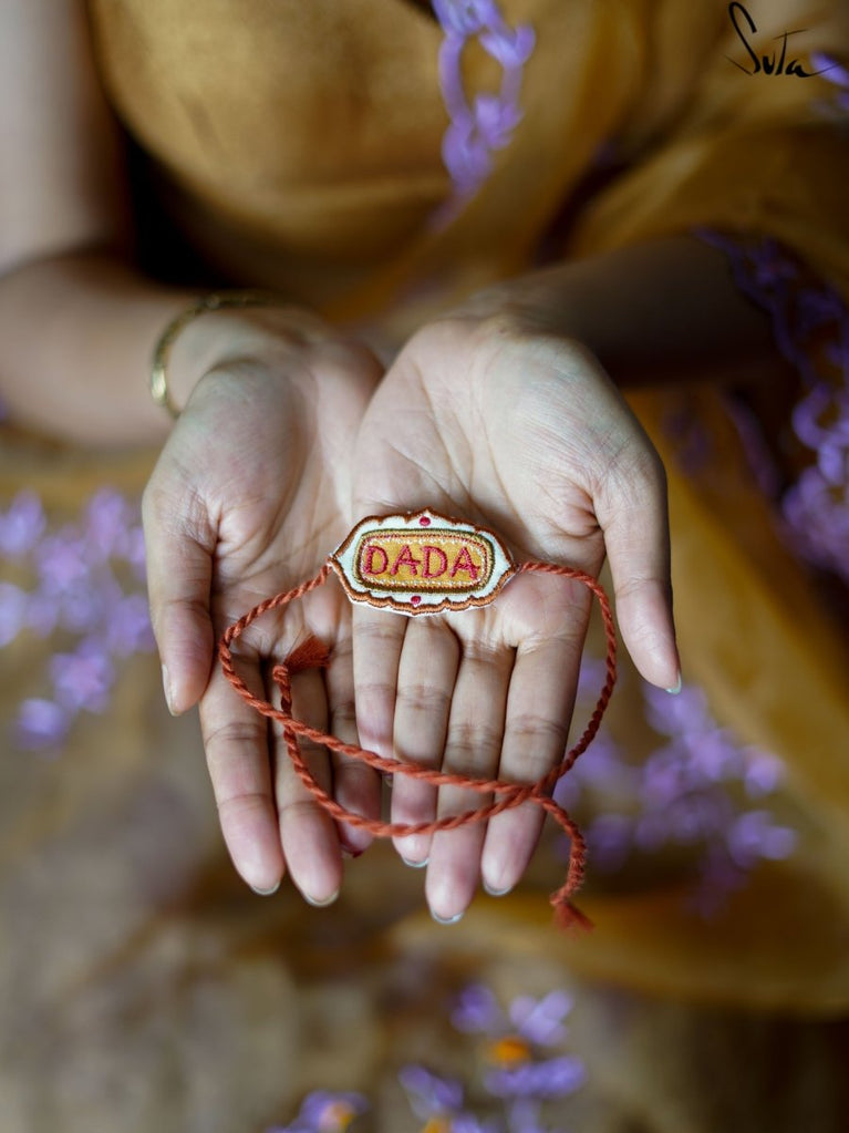 This rakhi is made of cotton thread and featured beautiful embroidery embellishments and detailing. The vibrant colours will remind you of the warmth and exuberance of your sibling bond, while the classic design is evocative of the timelessness of this tradition.
