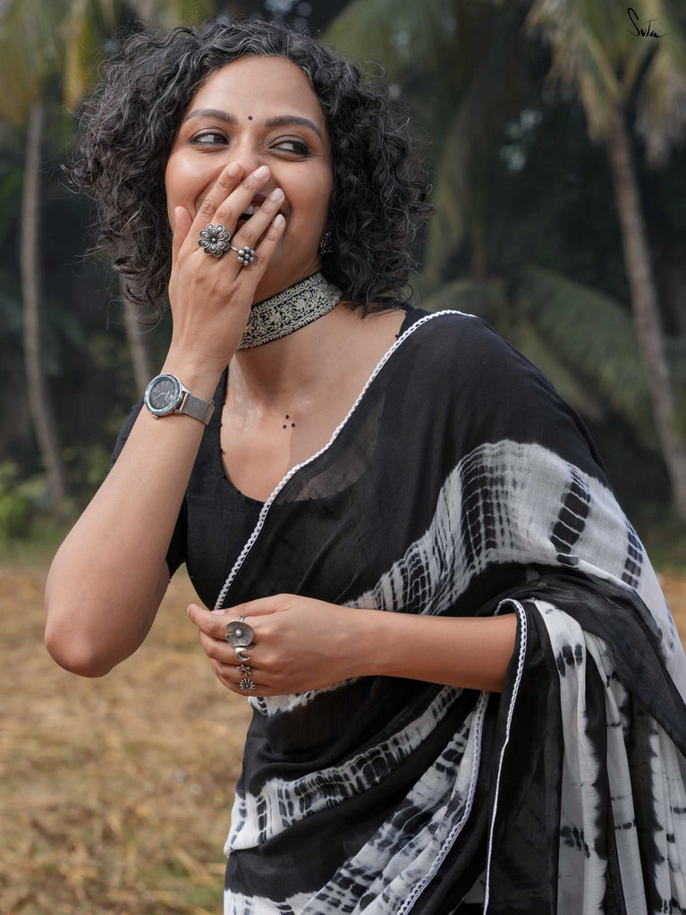 This saree is timeless elegance with a blooming twist. The soft black mul cotton drapes like a dream - lightweight, breathable, and endlessly flattering, making it a perfect go-anywhere, glow-everywhere piece.