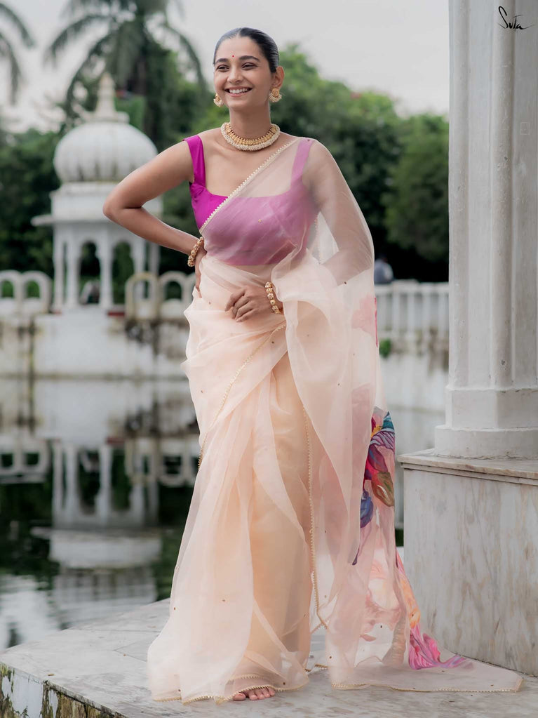 It’s the kind of saree that doesn’t shout for attention - it simply glows, just like you.
