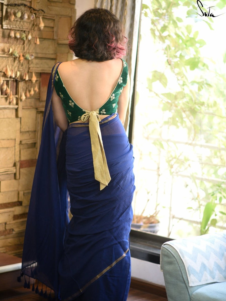 This blue made in heaven mul saree is simply beautiful!