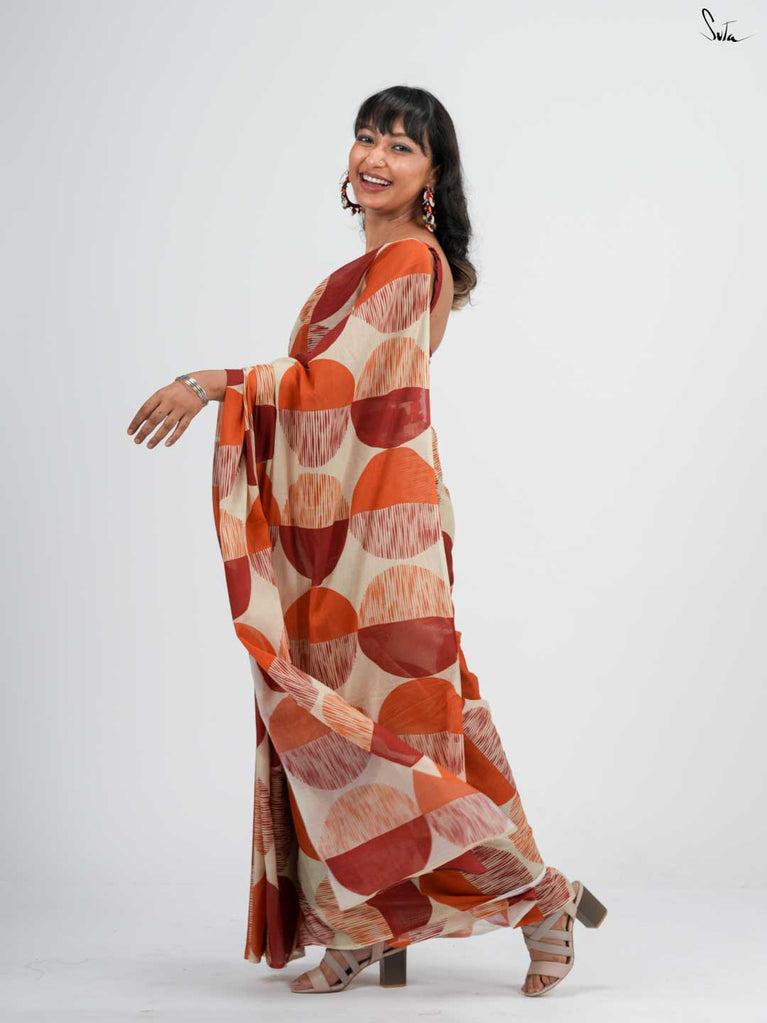 Viscose georgette, a combination fabric, is woven to perfect a sheer or semi-sheer material. It is light and perfect for occasions that require you to stay comfortable, feel light and soak in every moment of enjoyment. The material keeps you dry and is easy to care for, making it the perfect choice for tropical summers. The sheer effect lends a rich and sophisticated look.