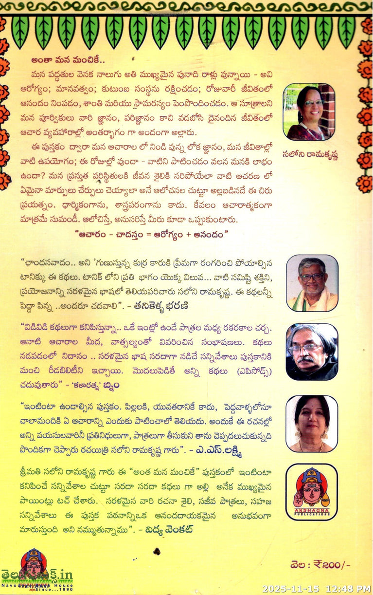 Antha Mana Manchike-Acharam,Chadastham,Arogyam,Anandam