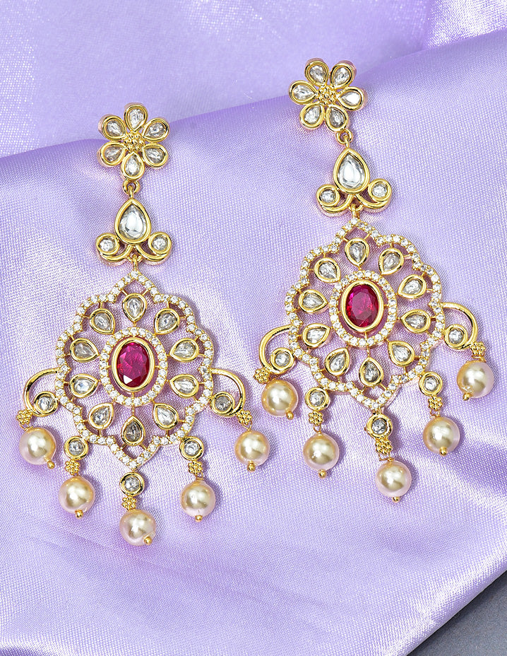 A smart and attractive choker set like this would be an amazing add-on to any jewelry lover’s collection. Embedded with white American diamonds Rani pink and Emeralds, combined with a striking design, this CZ choker set is one of a kind. Pair it with match earrings for any festive occasion and you’re good to kill it!