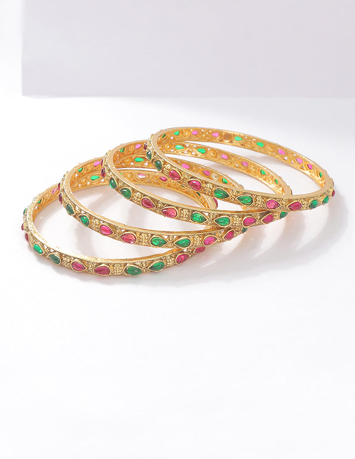 Premium matt-plated bangles with Ruby & Green Kempu stones. A perfect mix of tradition and style for any occasion!