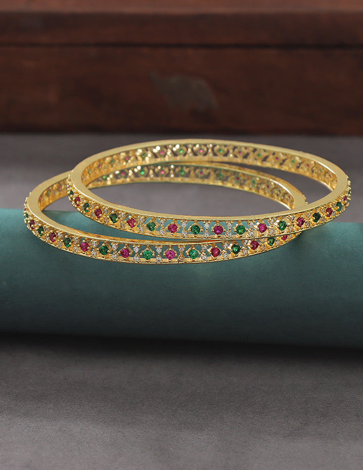Make a timeless statement with our Zircon Gold Polish Bangles, featuring delicate floral CZ design. Elegant solo or stacked!