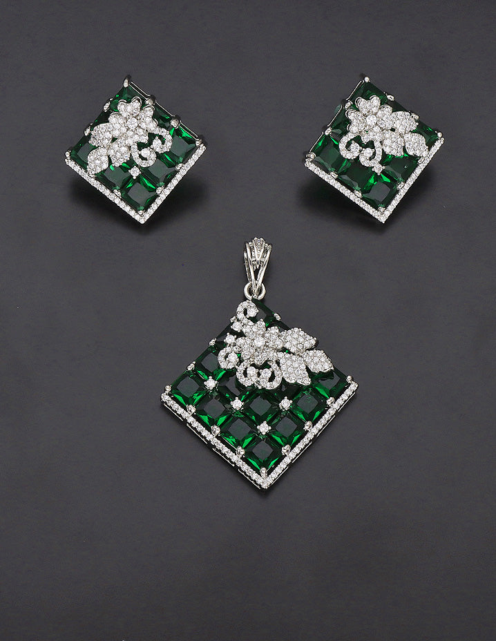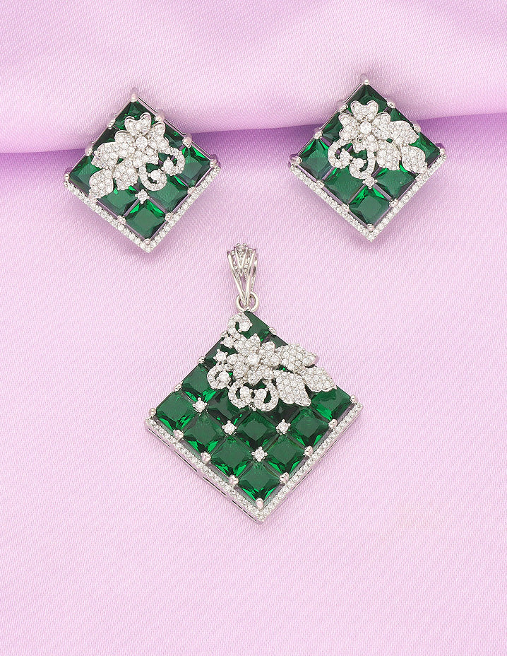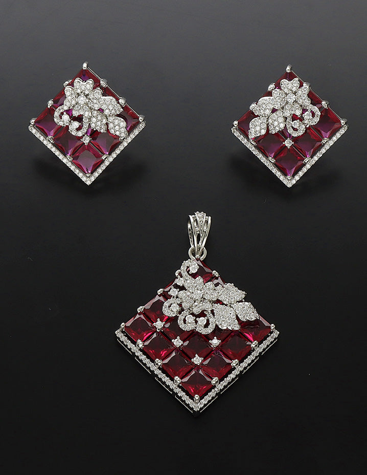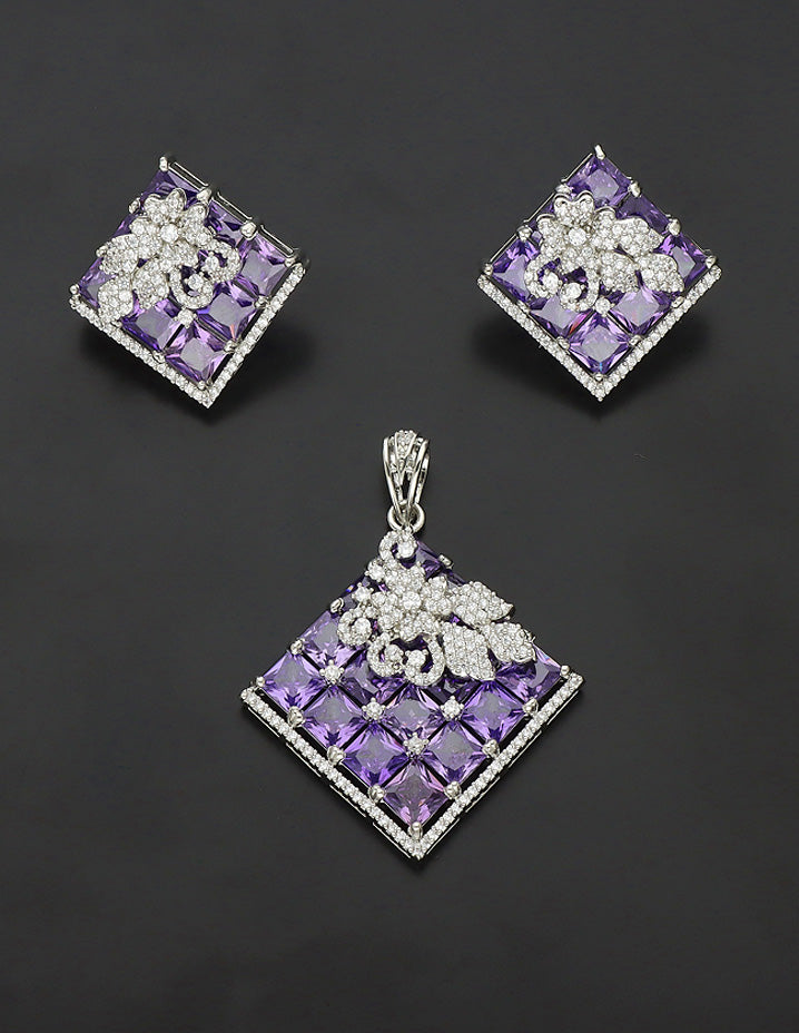 Zirconia Rhodhium Polish Pendant Set