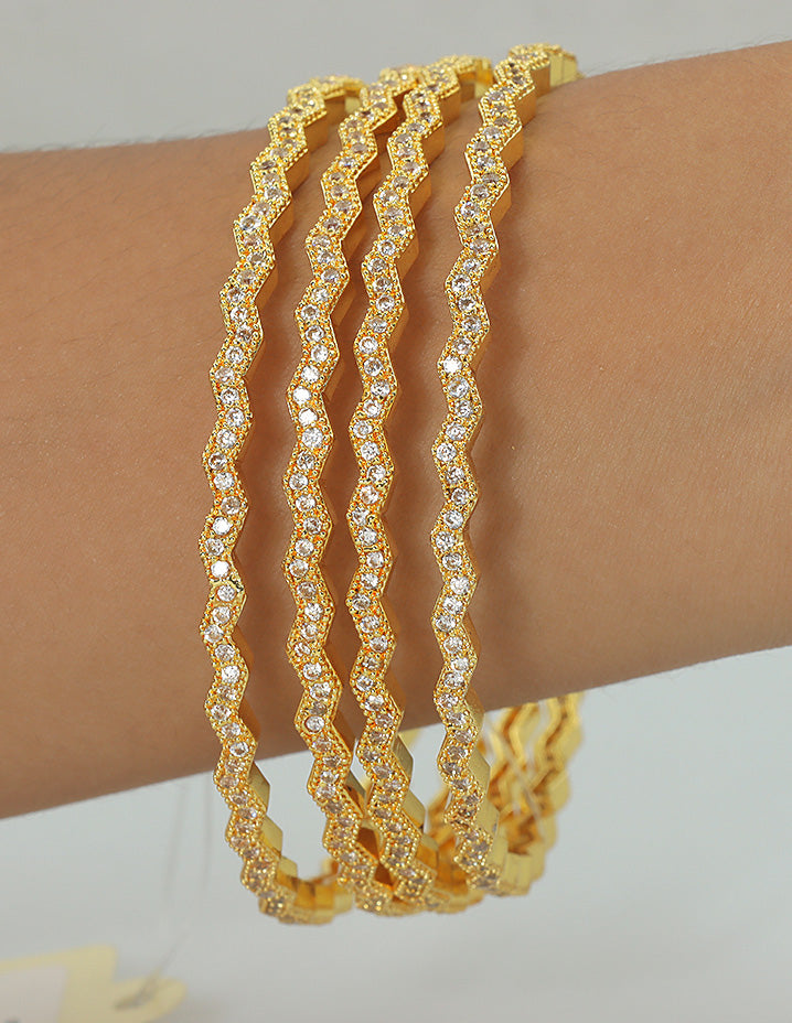 Sleek and stylish zigzag bangles studded with sparkling stones—designed to dazzle at every angle and elevate your glam look effortlessly.