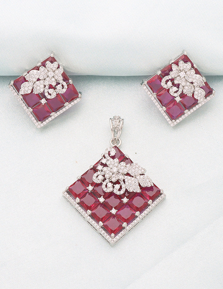 Shine bright with our Ruby+White & Emerald+White Rhodium-Plated Pendants, adorned with sparkling American Diamonds. A stunning pick for weddings, parties, or any special occasion!