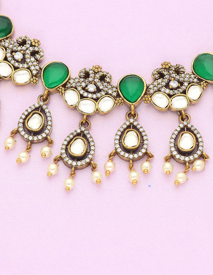 Add timeless elegance with our Designer Victorian Kundan Necklace Set, featuring a stunning Emerald Stone. Handcrafted with traditional Kundan techniques, it’s perfect for both special occasions and everyday wear.