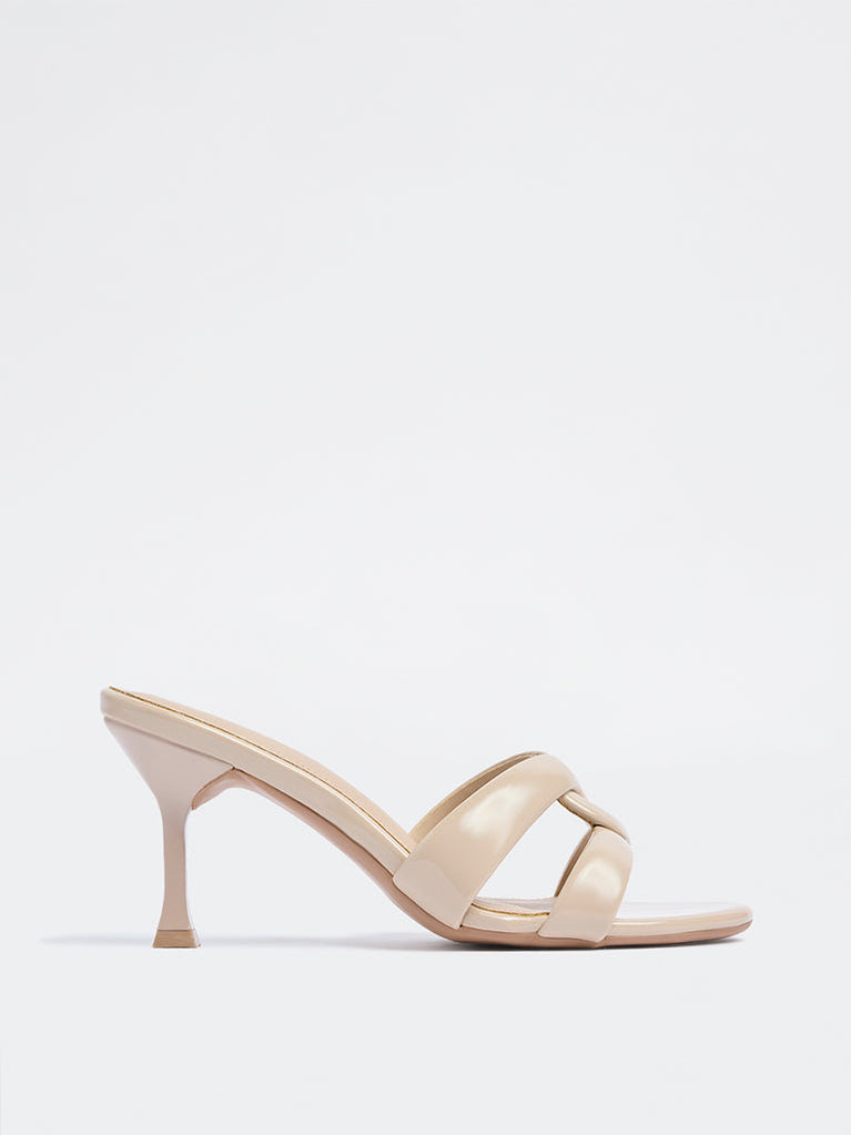 Clean and refined, these beige stiletto sandals from Luna Blu feature interwoven straps that frame the foot beautifully. A cushioned insole offers support and grip, ensuring comfort despite the slim heel. Easy to pair with both festive and formal outfits, they deliver understated elegance.